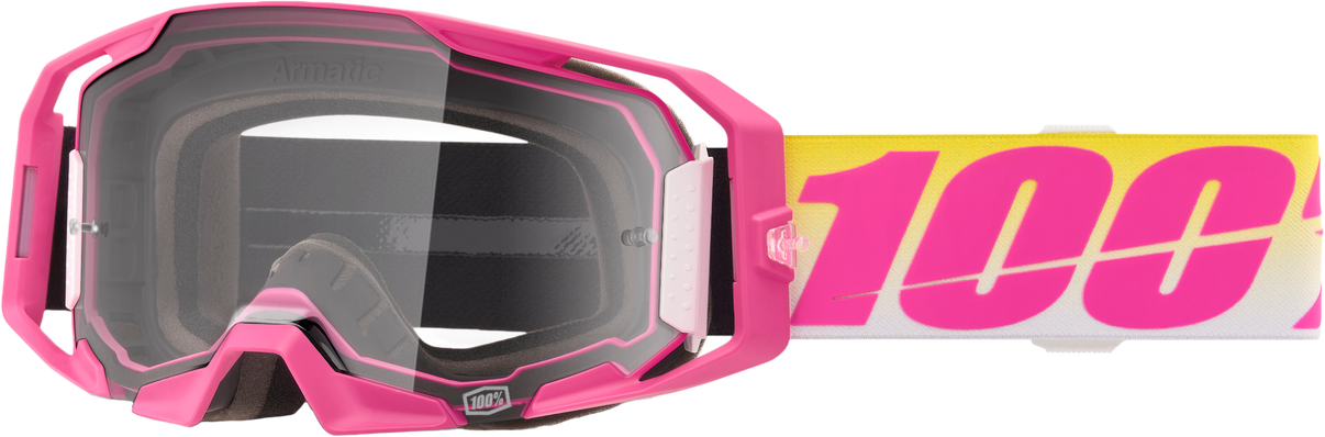 Introducing ARmatic - the latest evolution in the lineage of 100% motocross goggles. Born for the legacy of the championship-proven ARMEGA, ARmatic breaks new ground in MX goggle innovation. Building upon the success of ARMEGA's 3-D molded lens technology, ARmatic ensures the most accurate vision in motocross. Engineered with a revolutionary quick-release lens-changing system seamlessly integrated into the frame, ARmatic delivers exceptional performance and prioritizes user convenience. the result is a motocross goggle that redefines comfort and visual clarity.