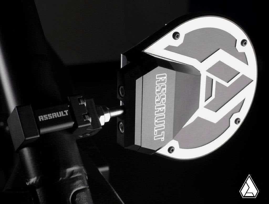 Assault Industries side mirrors are compatible with a wide variety of vehicles and are currently in use on UTVs, offroad race rucks and Jeeps. The mirrors can be mounted using available 1.5, 1.75, 1.875 (CanAm Maverick X3) or 2 inch clamps and can also be custom mounted.