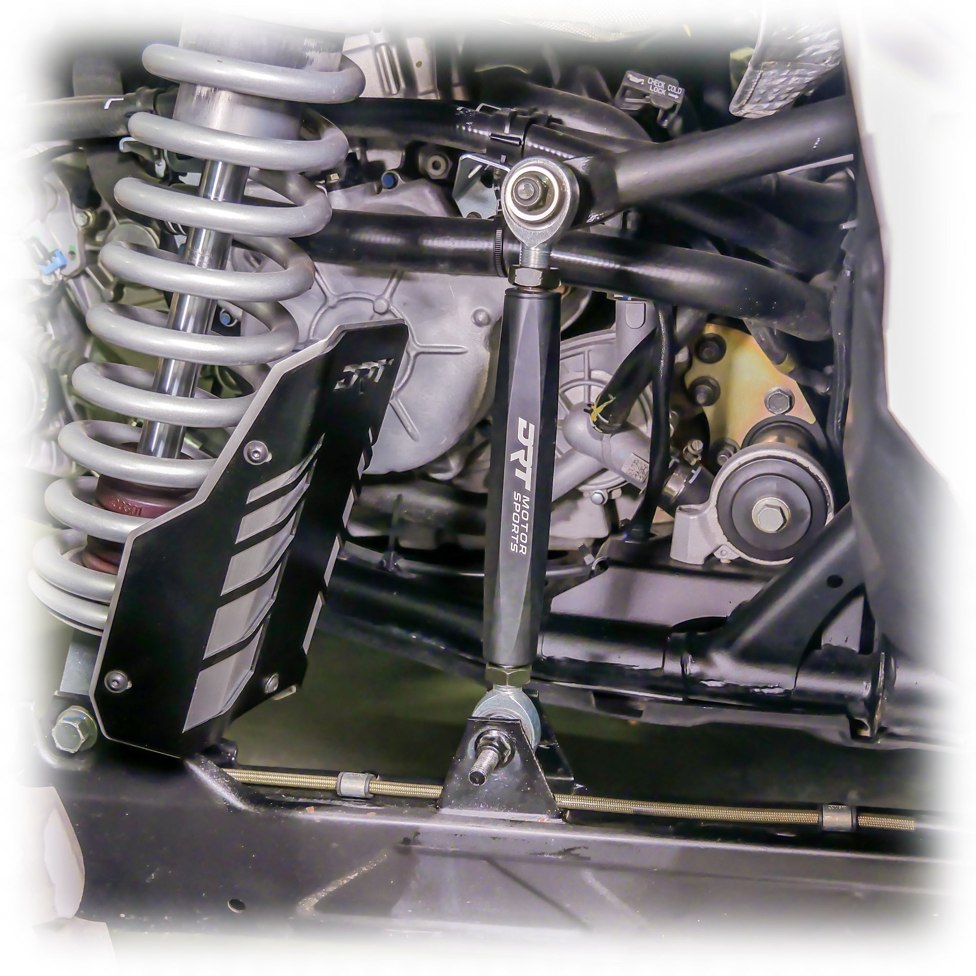 The sway bar links also increase rigidity and reduce lateral suspension flex that is transferred from the rear trailing arms to the sway bar. The DRT Motorsports part number 20010SB09201 is designed to replace OEM part number 1544079 on the Polaris Pro XP rear stabilizer bar assembly; all models.