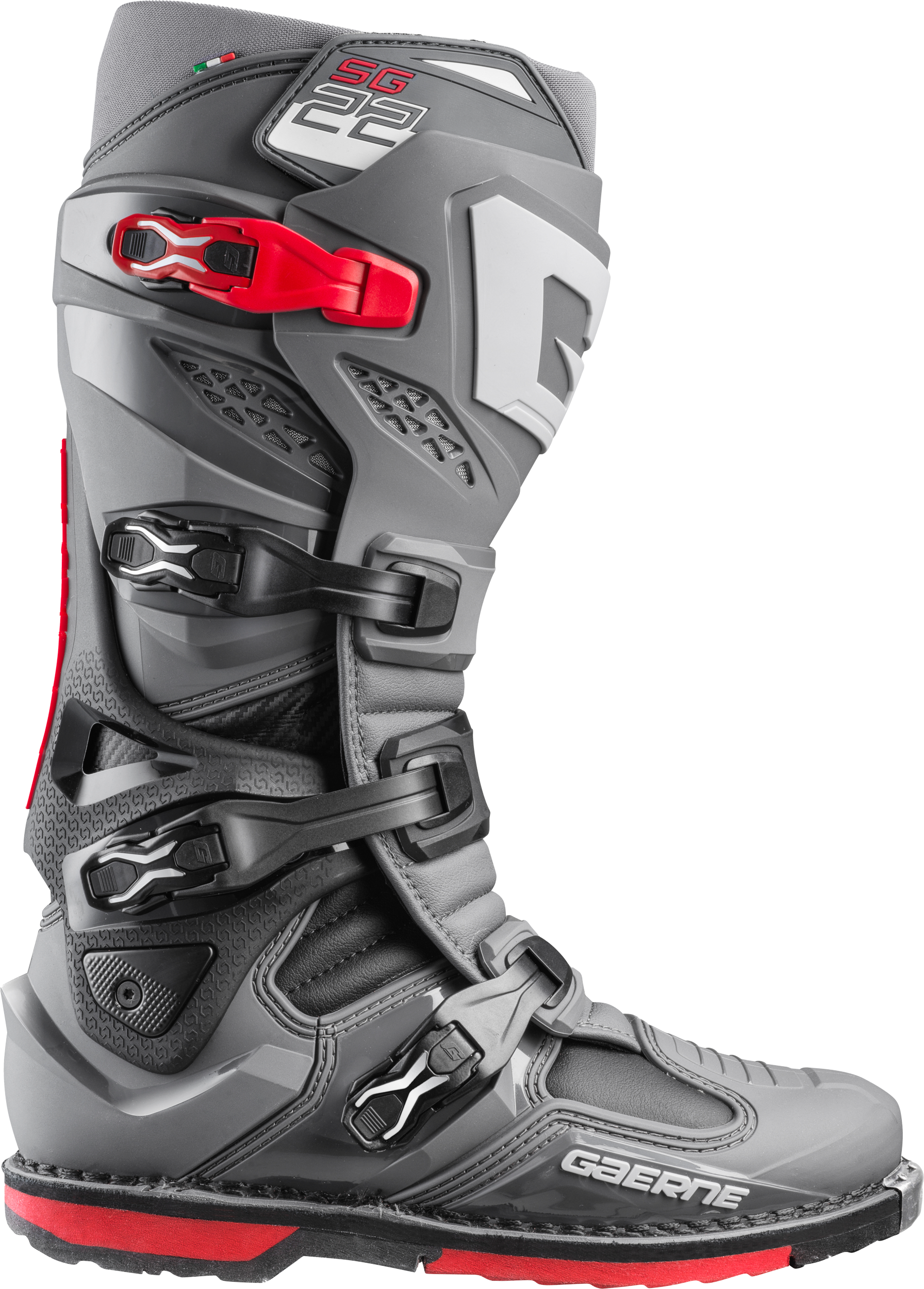 Experience unparalleled performance with the GAERNE SG.22 Boots in Anthracite, Black, and Red, Size 12. Designed with a focus on high-performance and Made in Italy craftsmanship, these boots seamlessly blend advanced materials with innovative technical solutions. Every aspect of the SG.22 has been meticulously crafted for optimal functionality and comfort, making them a must-have for serious riders.
