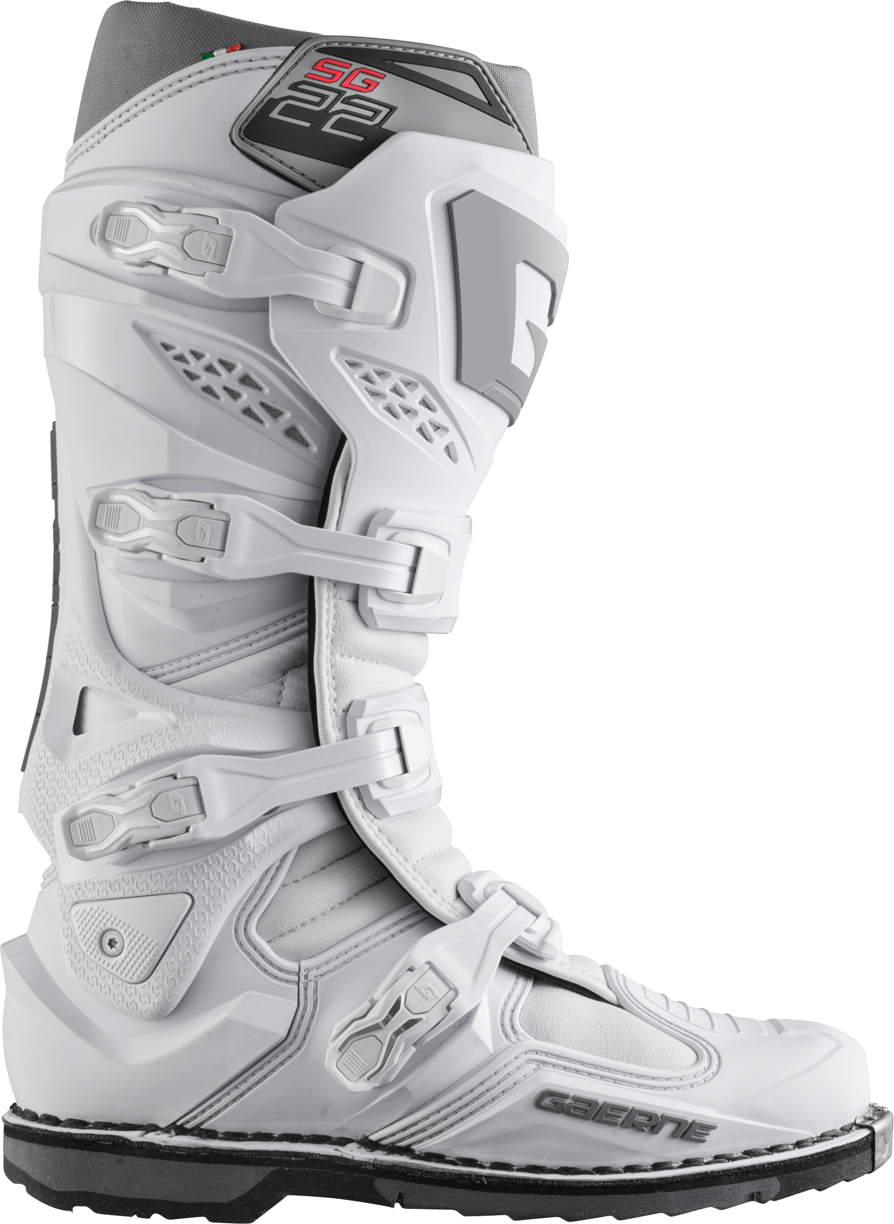 Experience the perfect blend of Italian craftsmanship and advanced technology with the GAERNE SG 22 Boots in White, Size 12. Designed for maximum performance and comfort, these boots are engineered to protect your feet while providing unparalleled support during your rides. Every detail of the SG.22 has been meticulously crafted to meet the demands of serious riders.