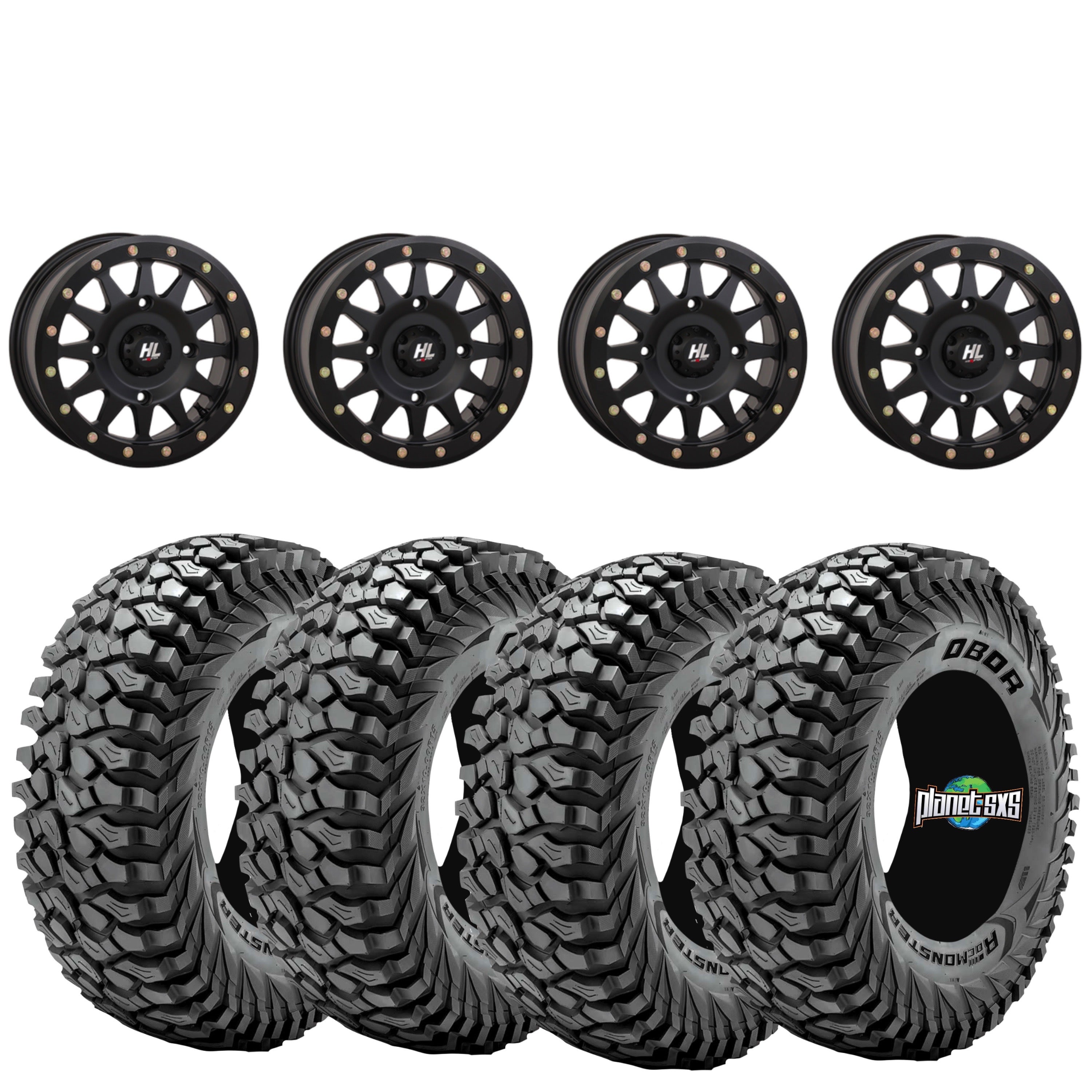 High Lifter HLA1 Matte Black Beadlock Wheels on Obor RocScraper Tires – 4/137 UTV Wheel & Tire Kit