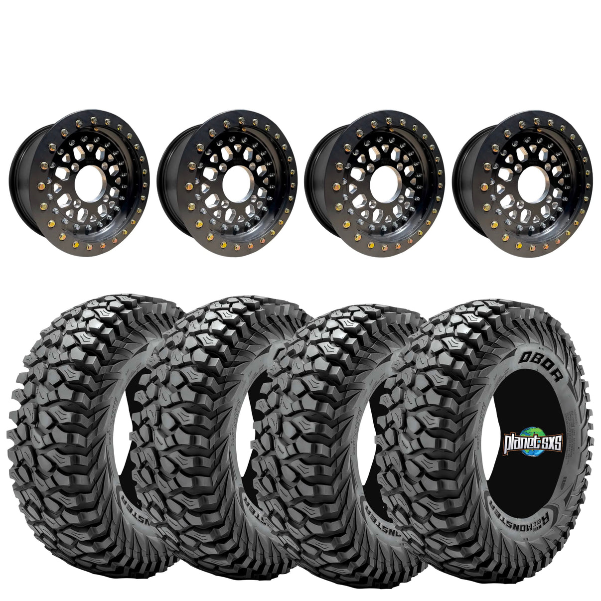 MRT Tail Gunner Beadlock Wheels on Obor RocScraper Tires – UTV Wheel & Tire Kit