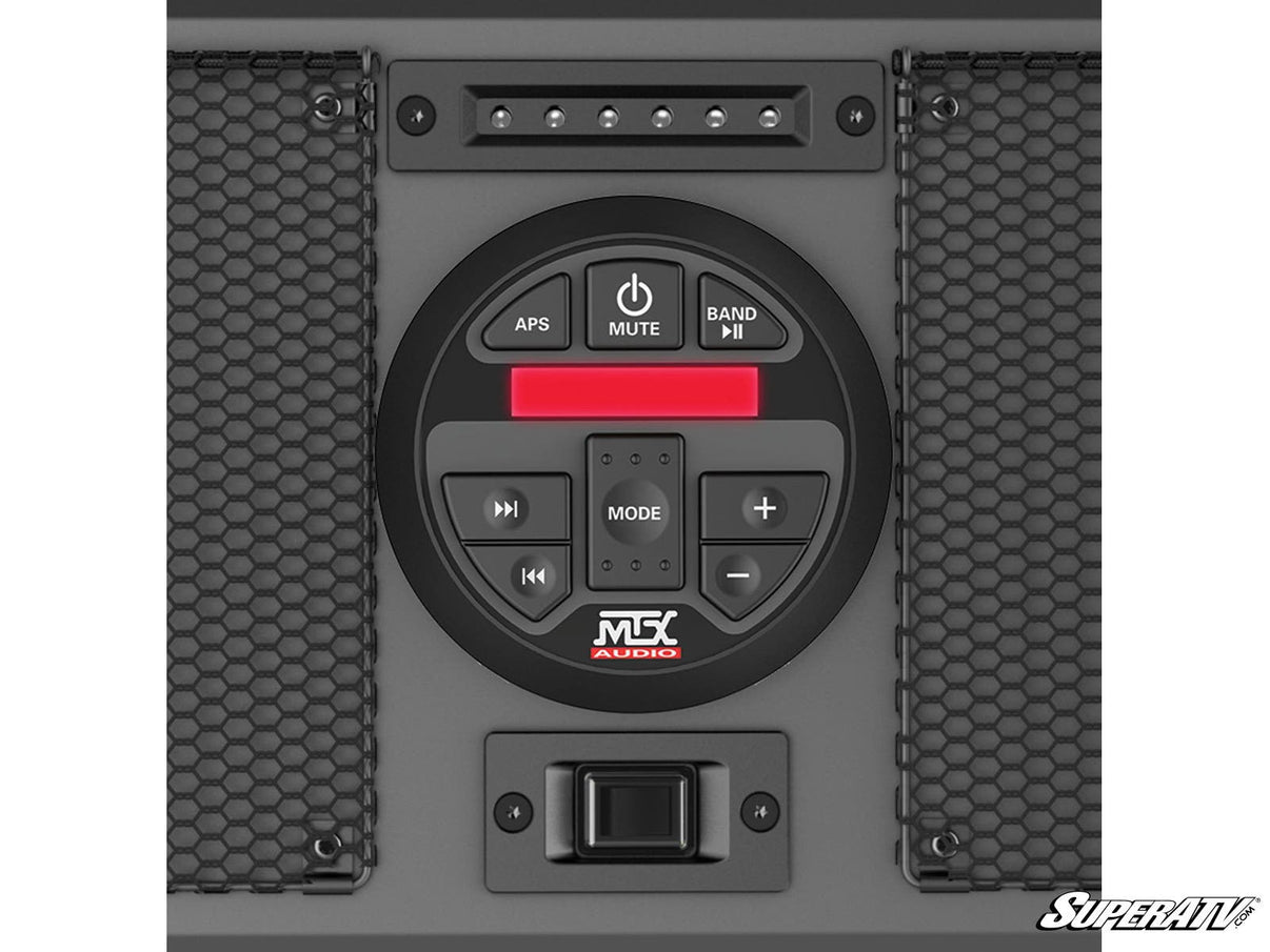 Be the Life of the Party Everyone knows the adventure doesn't truly start until the tunes are pumping. If you want to experience unbeatable, high-quality audio on your next ride, you need this MTX MUDSYS46 4-Speaker UTV Sound System. It mounts above your head and delivers everything you need to rock out: an integrated power amplifier, four all-weather coaxial speakers, a digital AM/FM radio, and multiple ways to listen to your favorite music. Your ride will never be the same.