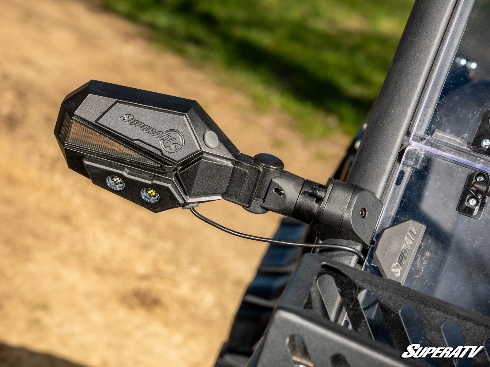 These side-view mirrors work twice as hard as any other mirror on the scene. They provide a crystal-clear rear view, plus they include bright front-facing lights. The lights work great to illuminate dark trails or as turn signals. You can even use them in two different colors, white or green!