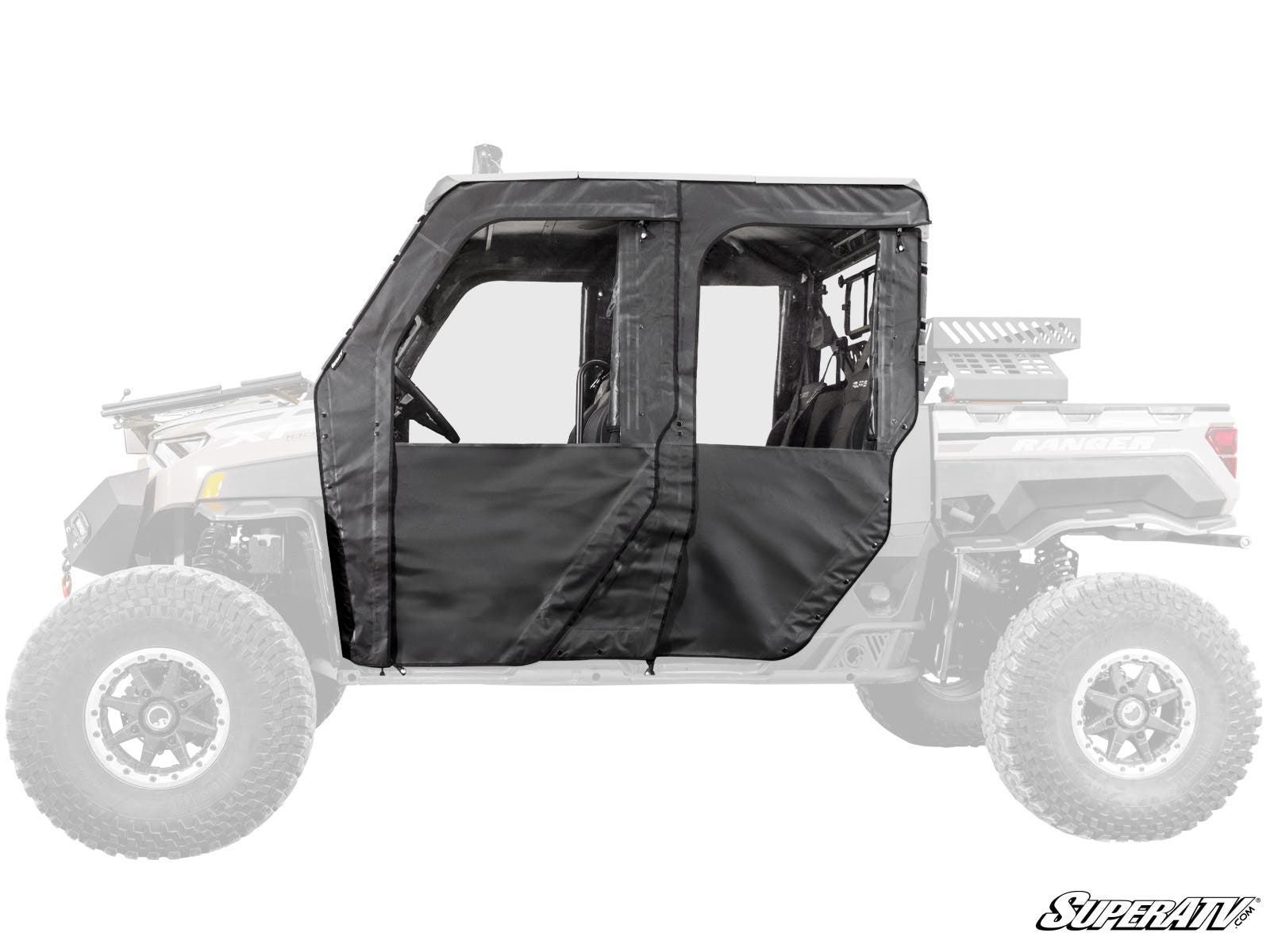 Part of a Full Cab Enclosure These doors are compatible with SuperATV's front and rear windshields and roofs so add them and make it a full cab enclosure. When your cab is sealed, you can ride through the worst weather and keep your crew comfortable.