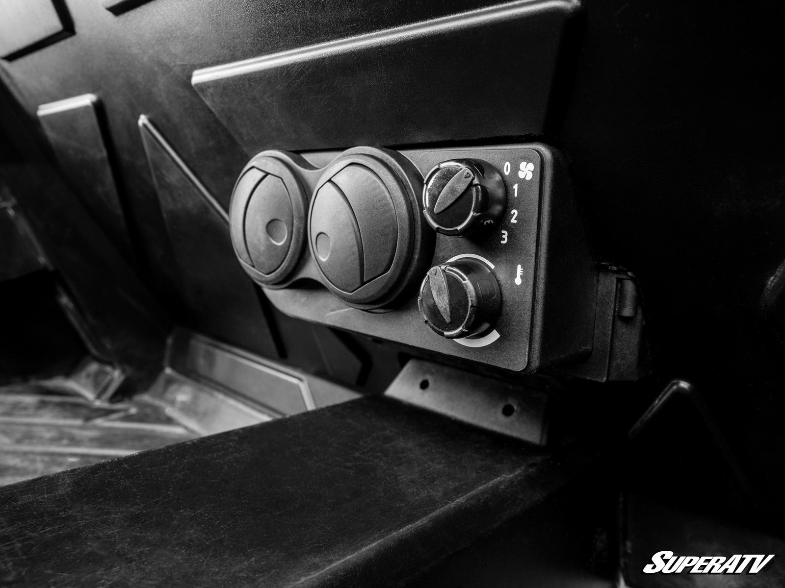 Now you can use your Ranger 1000 Diesel year-round with SuperATV's Cab Heater keeping you warm. It mounts under the dash between the seats where it's out of the way for both the passenger and the driver. It draws engine heat directly from the coolant lines to heat your cab just like a traditional car heater. Install is easy our kit uses the Ranger's own key on and power terminals to make wiring a cinch. We include hoses, drill-bits, and Ranger-specific mounting plates to make it as easy as possible to get your heater up and running. With adjustable temperature fan speeds you'll be riding in luxury all winter long.
