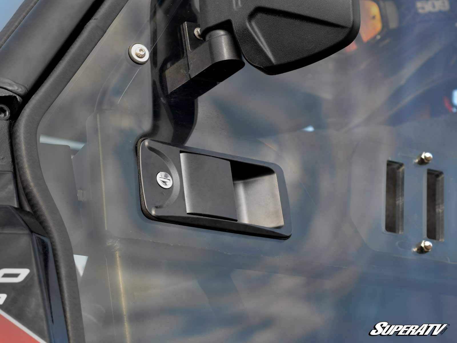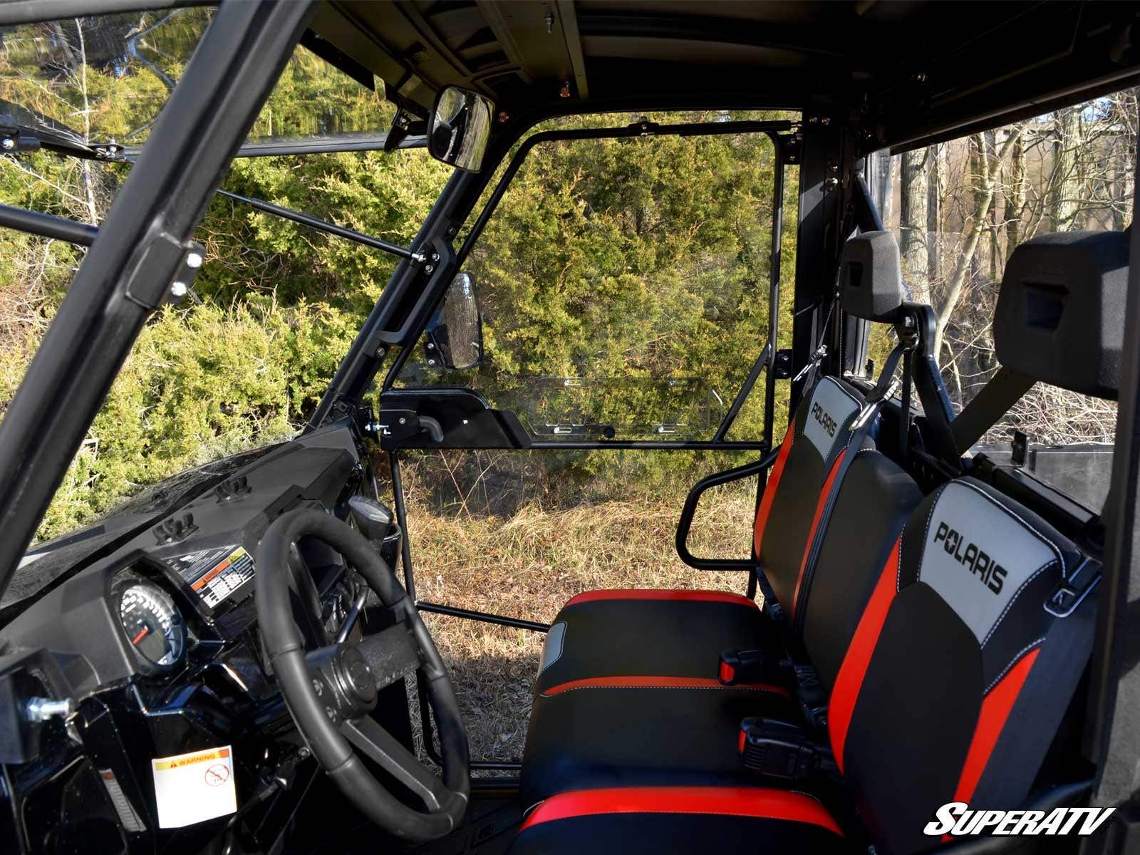 These Polaris Ranger doors are built to keep cold air out, but with optional sliding vents and gravity hinges, you don't have to stress about what to do in summer. When things get warm, slide your vents open to let the air in. If you want full breeze, the gravity hinges let you remove and reinstall them in just seconds.