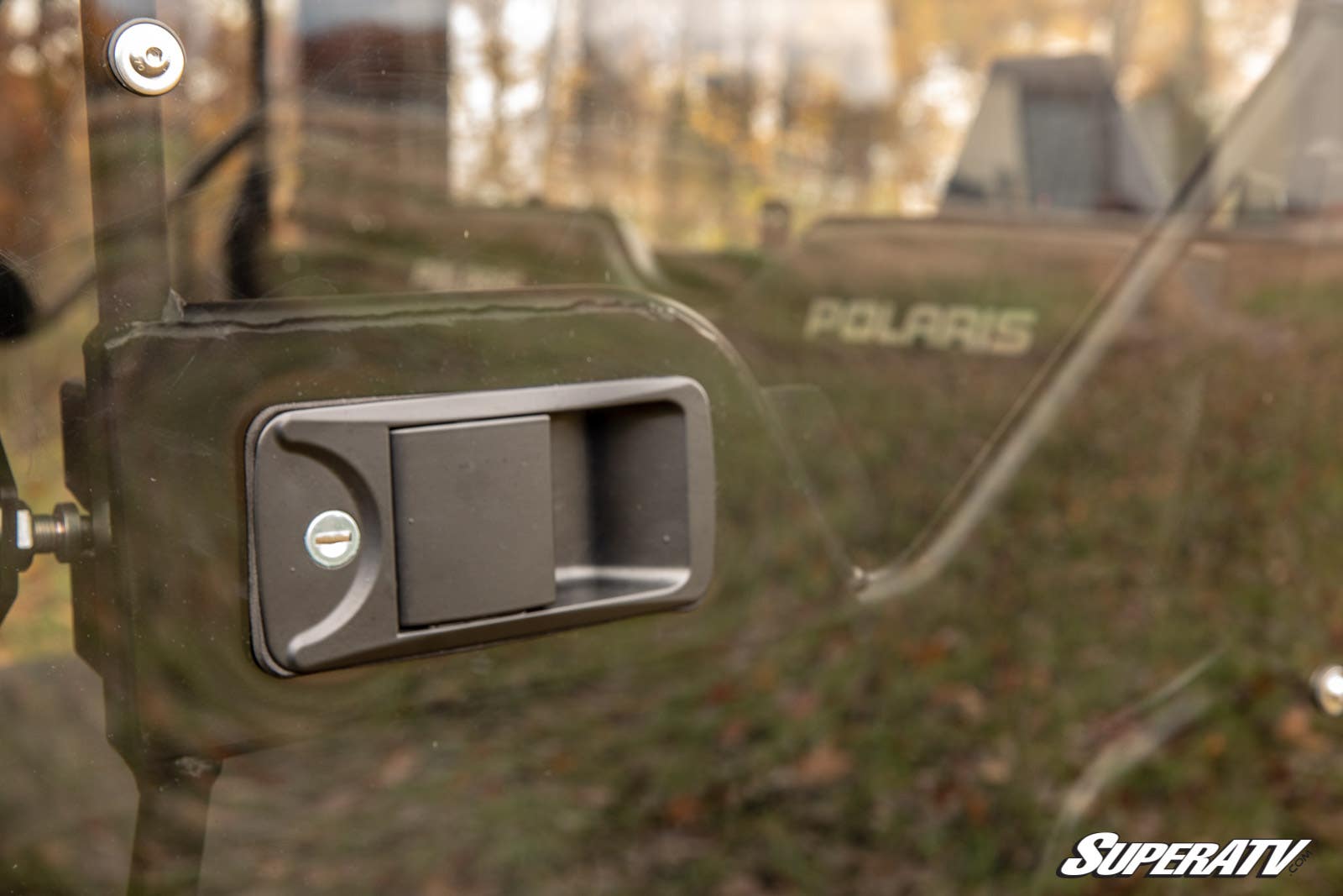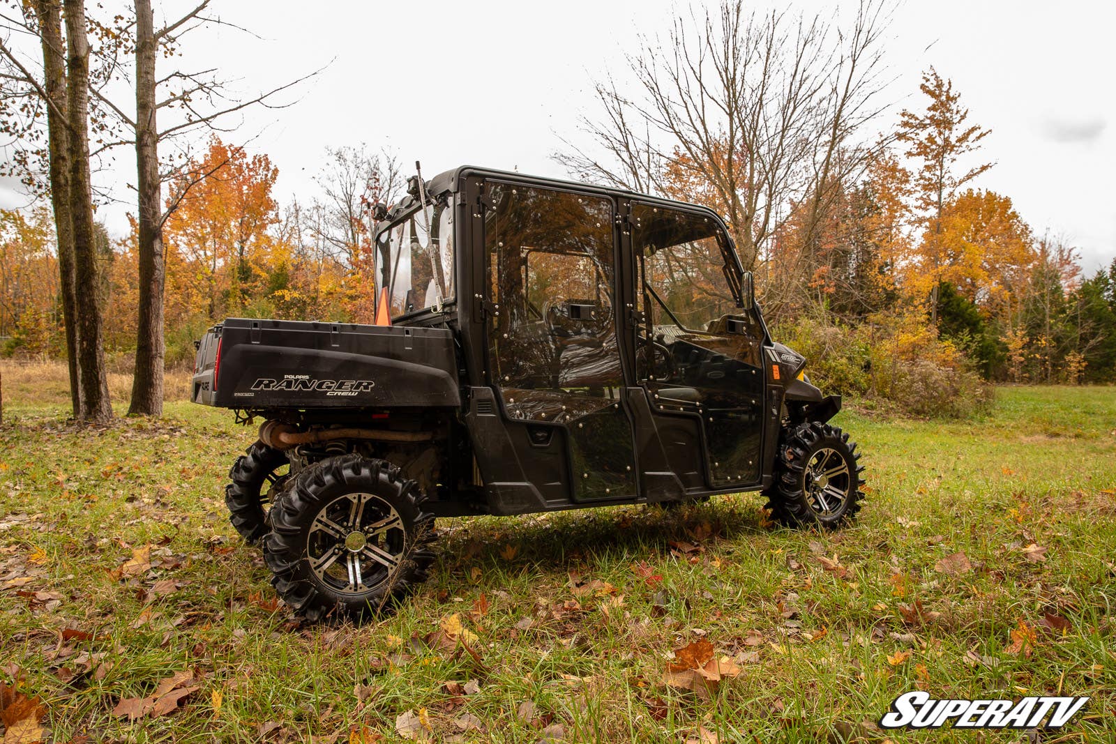 Get SuperATV's Full Doors for the Polaris Ranger Midsize to make every ride more comfortable. These doors are made with your choice of scratch resistant or non-scratch resistant lightly tinted 1/4" hard coated abrasion resistant polycarbonate. That means It's super strong and won't easily scratch when you take it down the trail. Each door features a heavy-duty carbon steel frame to make them sturdy and rigid. They're finished with a wrinkle black UV-resistant powder coat finish to make them even more durable and stylish. They also feature a rubber seal to make sure every ride is rattle free. We finished them off with a lockable door latch, so you can secure your UTV if you decide to complete the cab with front and rear windshields and a roof.