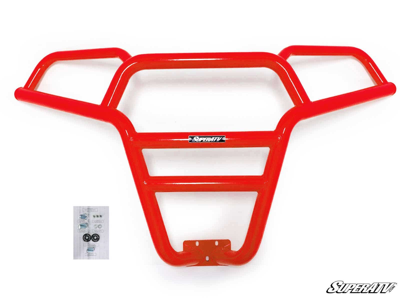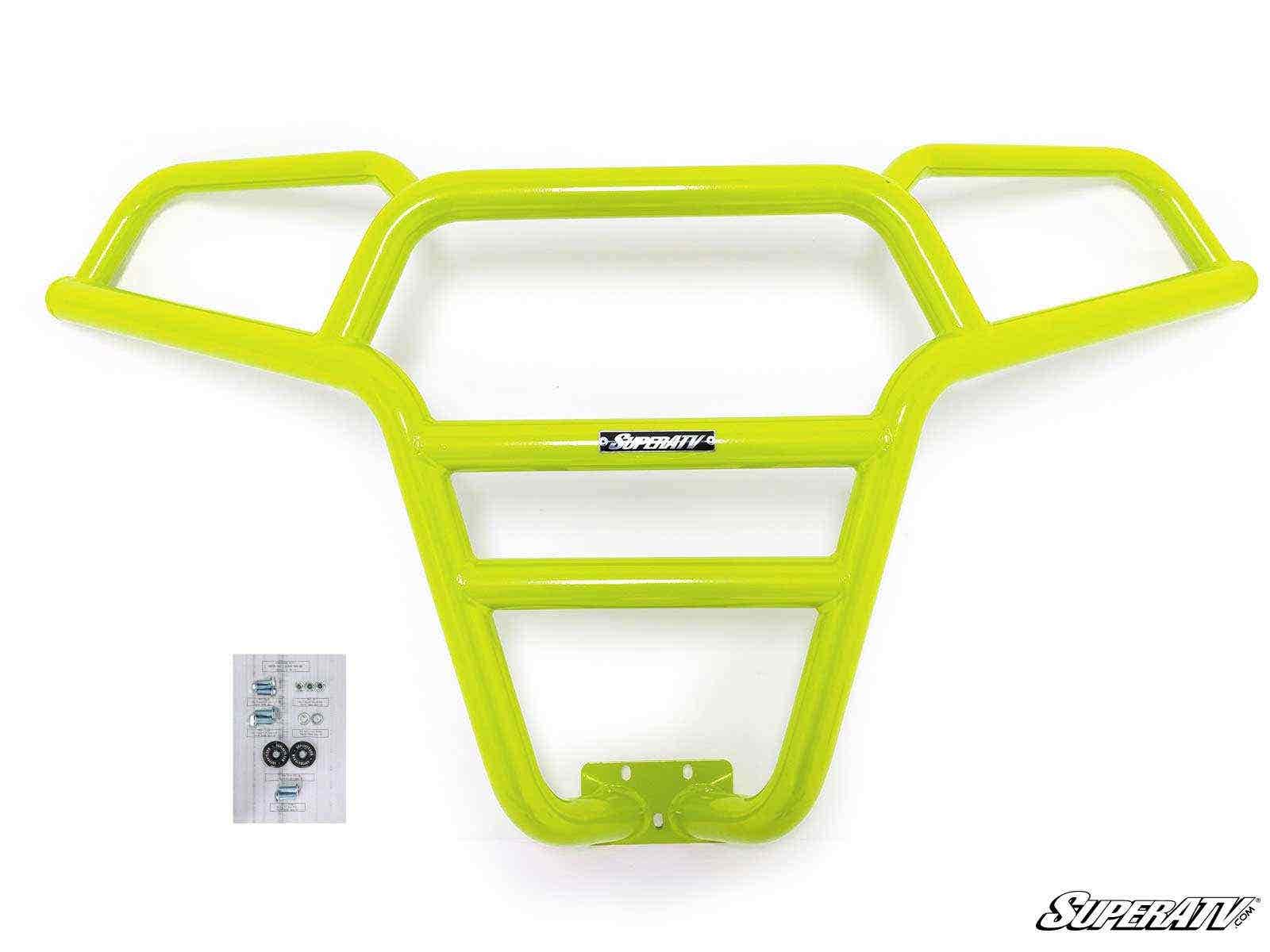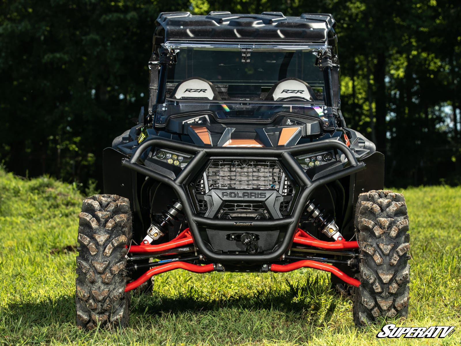 When you put a front brush guard like this on your UTV, you're making a statement. The UV-resistant powder coating and CNC machined end caps say you don't compromise. The tubing bent to match your RZR 1000's predator-style front end will turn heads and show everyone that you're there to play hard. It's a bumper for the bold.