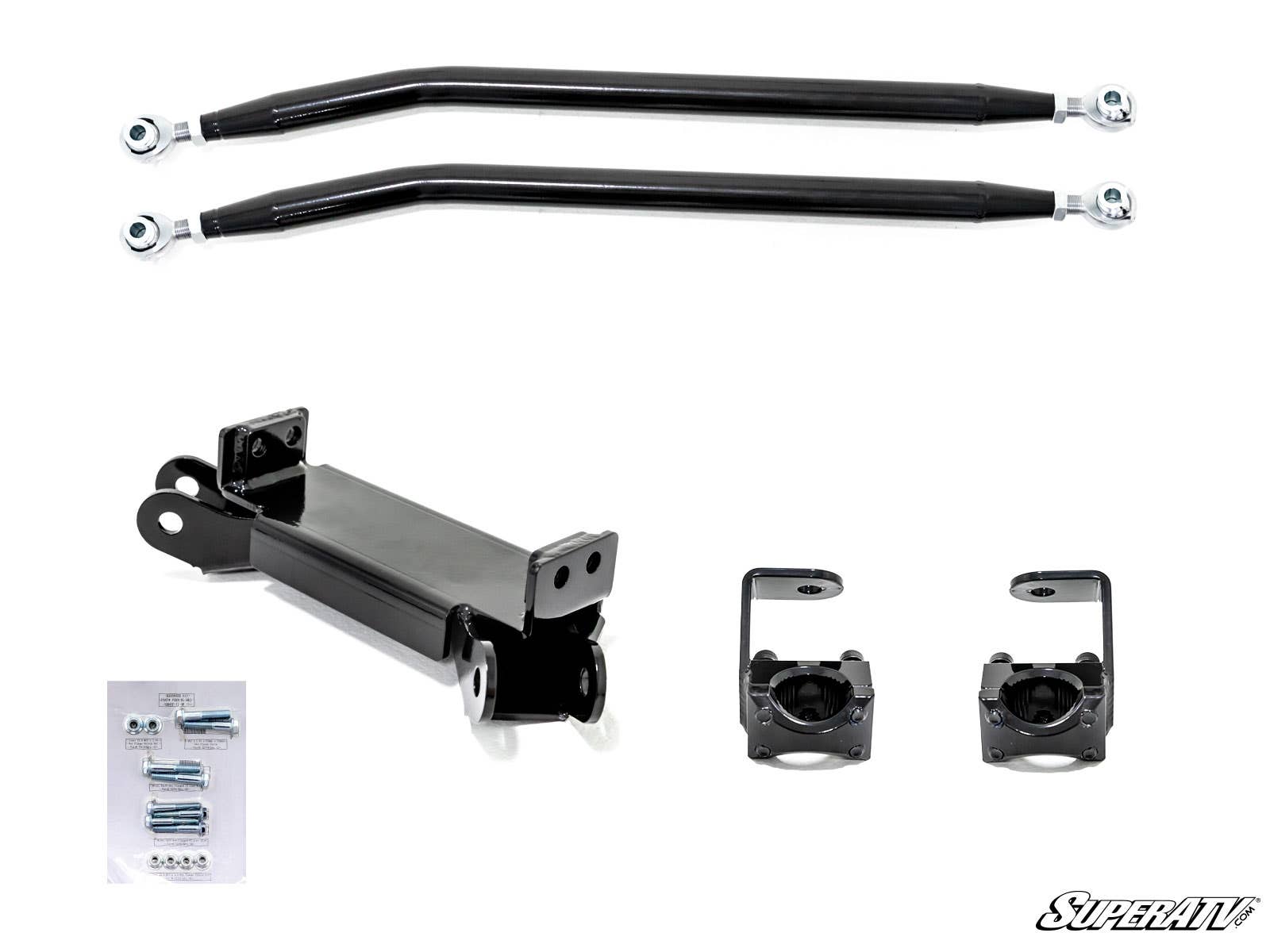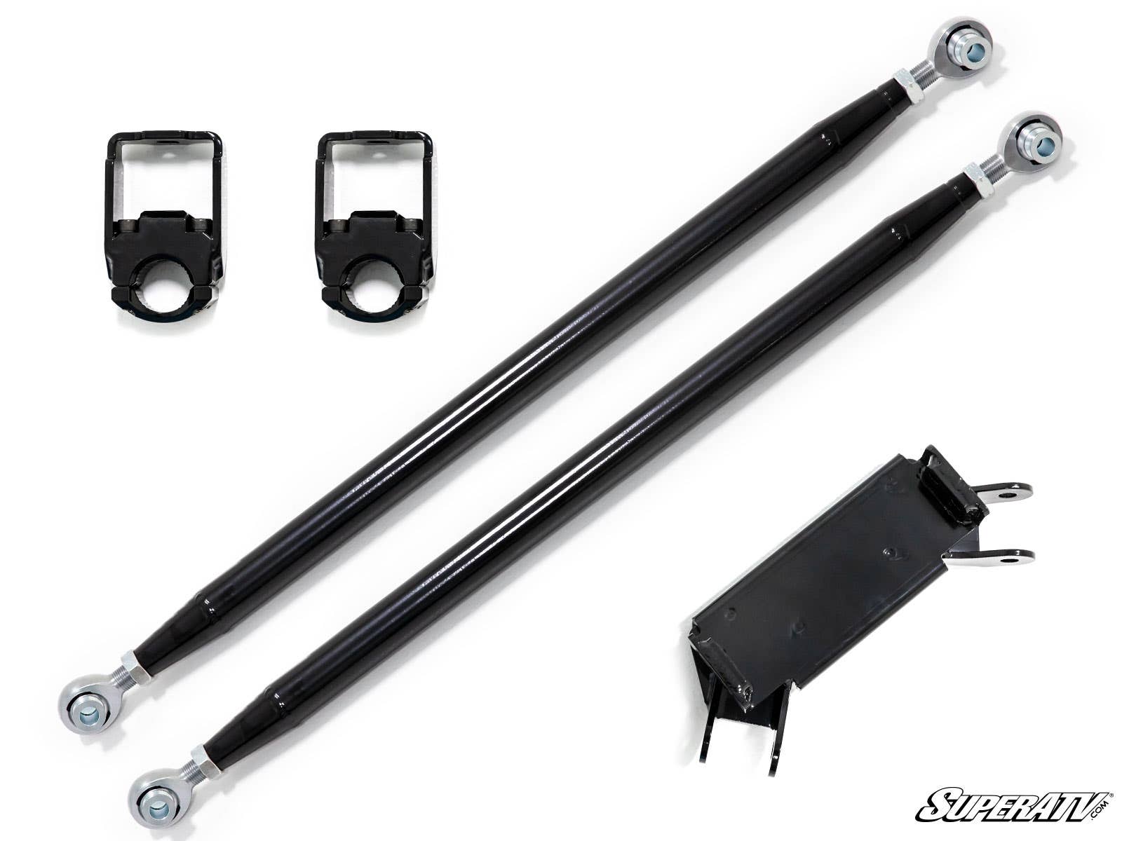 Do you know why SuperATV is one of the only companies you can find that makes track bars, jamb bars, or A-arms support bars It's because they're really stinking tricky. Without precision placement, you'll compromise strength, ground clearance, suspension travel or, worse, all three. We use Double Axis technology to ensure you get full suspension travel without binding. They maintain perfect 3-point geometry that gives you maximum strength and clearance.