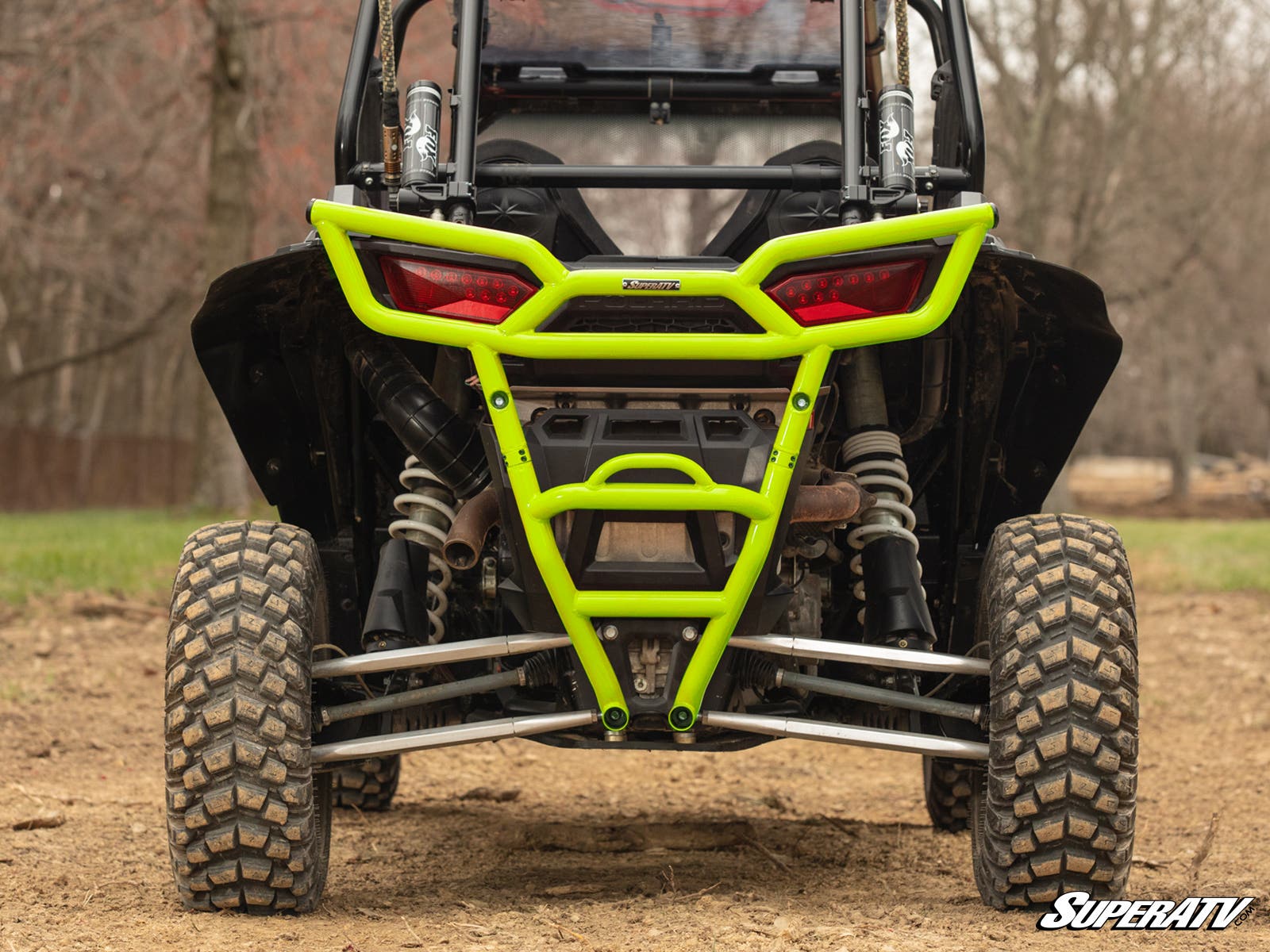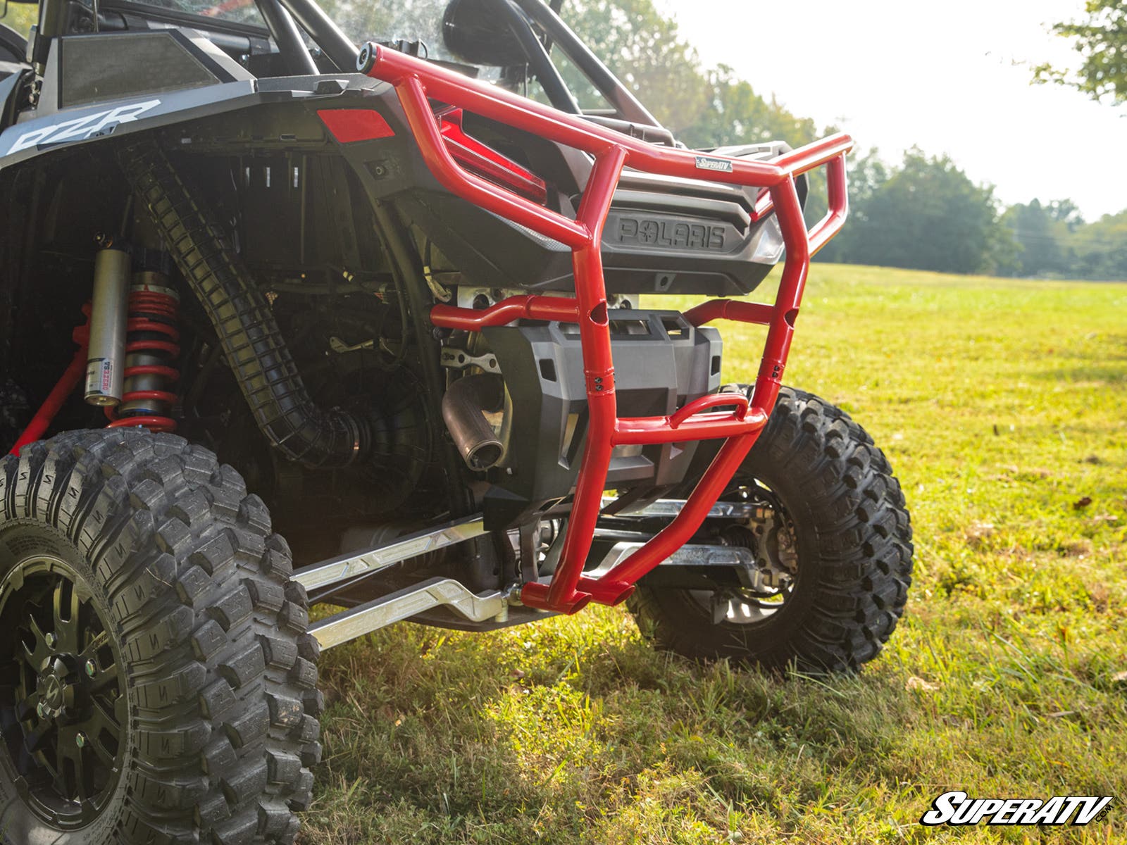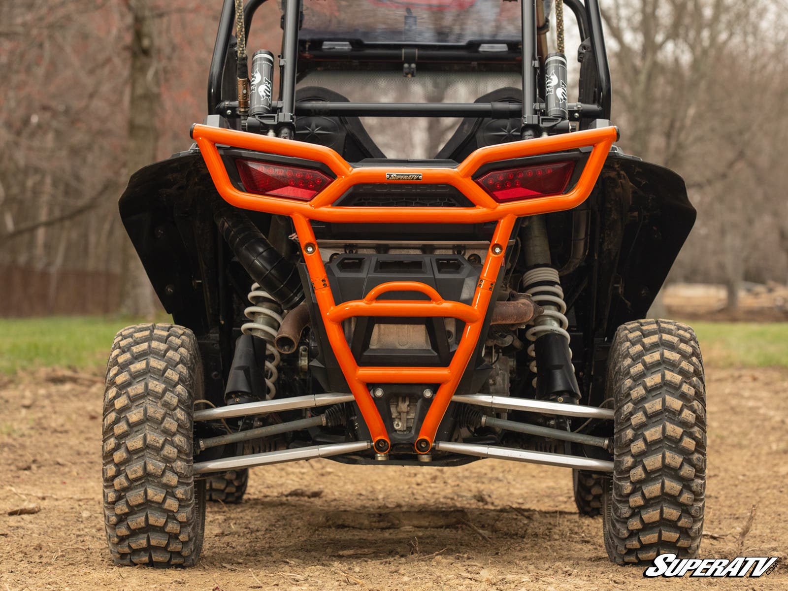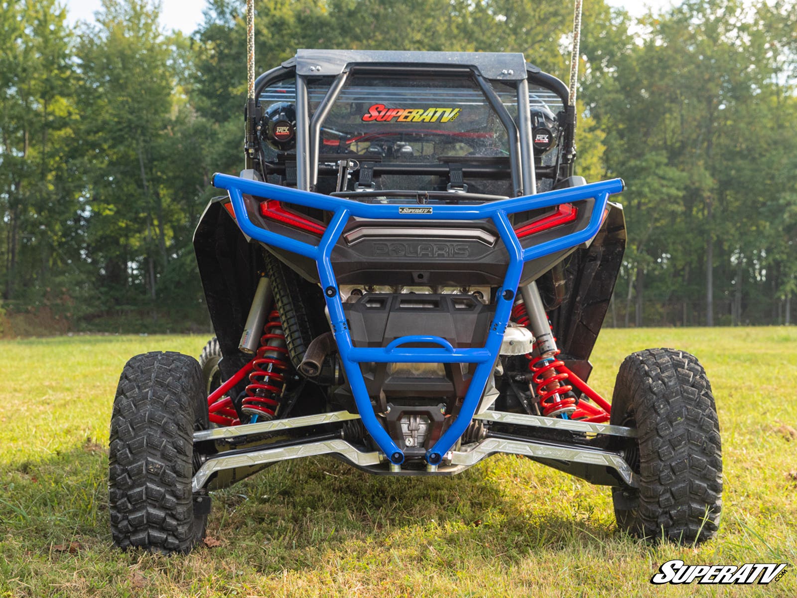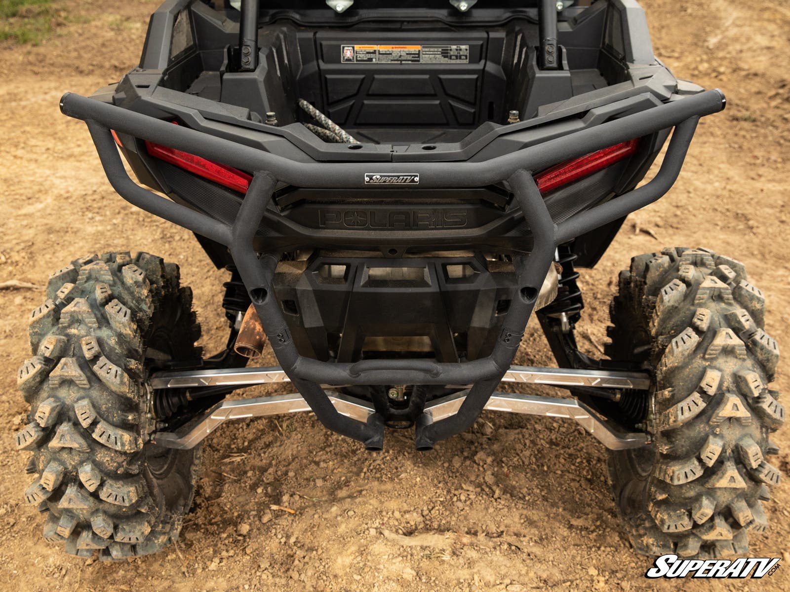 SuperATV's Rear Bumper for the Polaris RZR XP Turbo keeps your rear-end safe when you put the pedal down. One of the industry's fastest, most powerful, and most aggressive machines deserves a bumper to match the 168 horses under the hood. That's where SuperATV's Rear Bumper comes in.