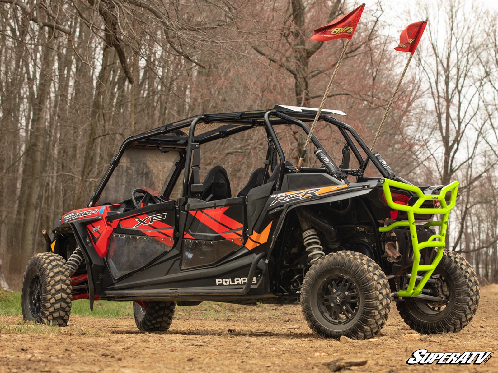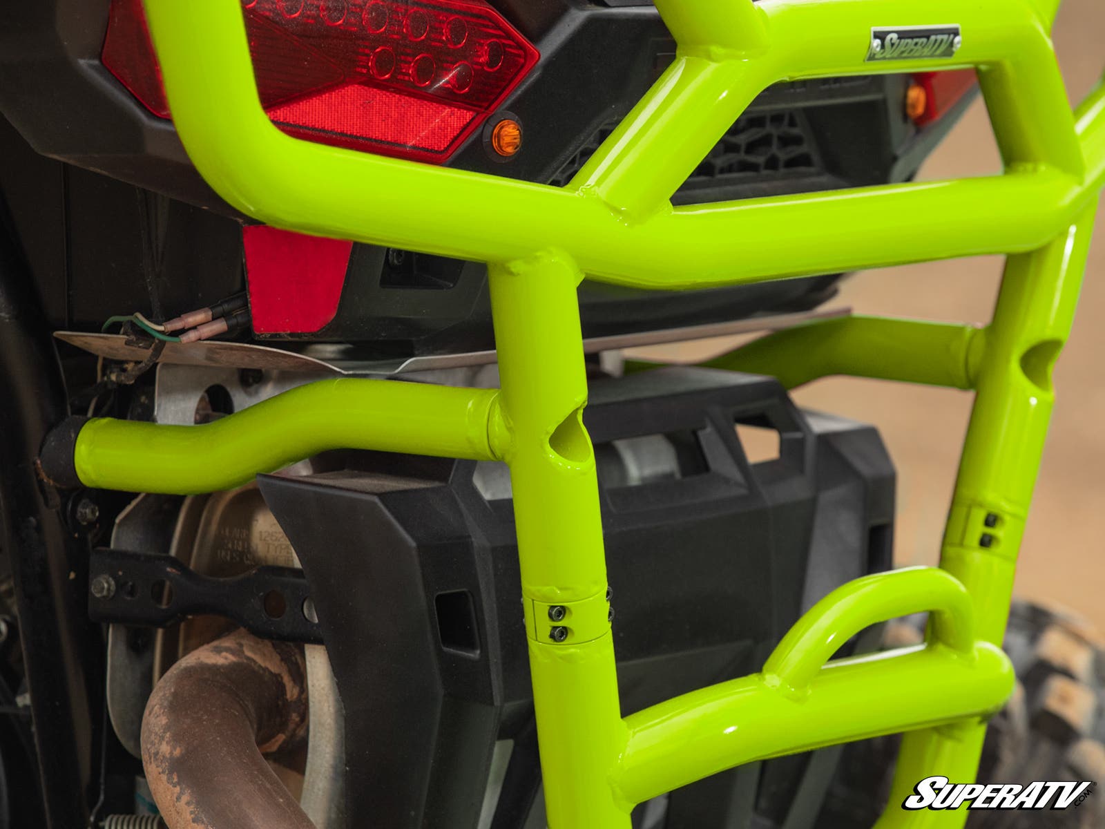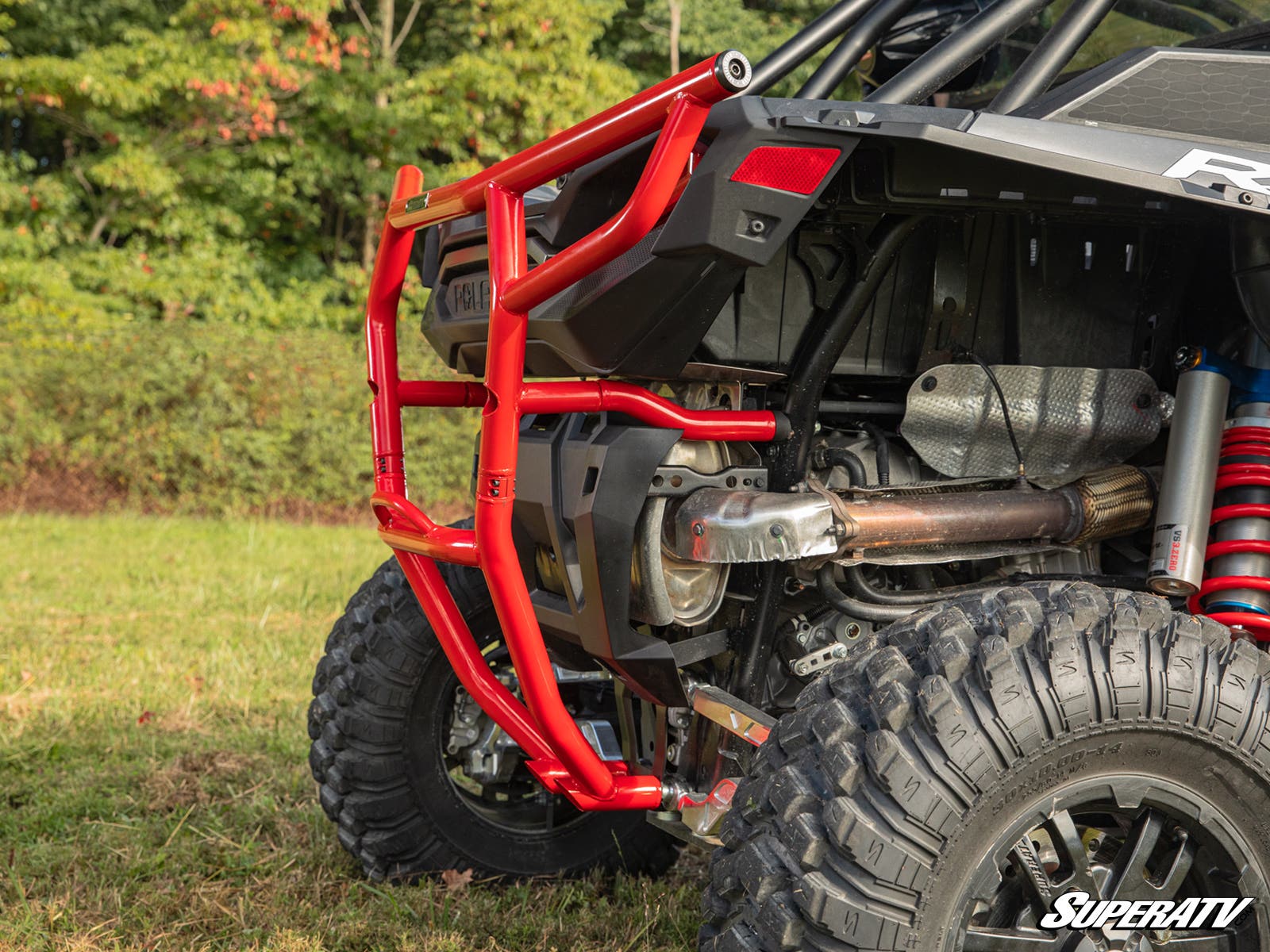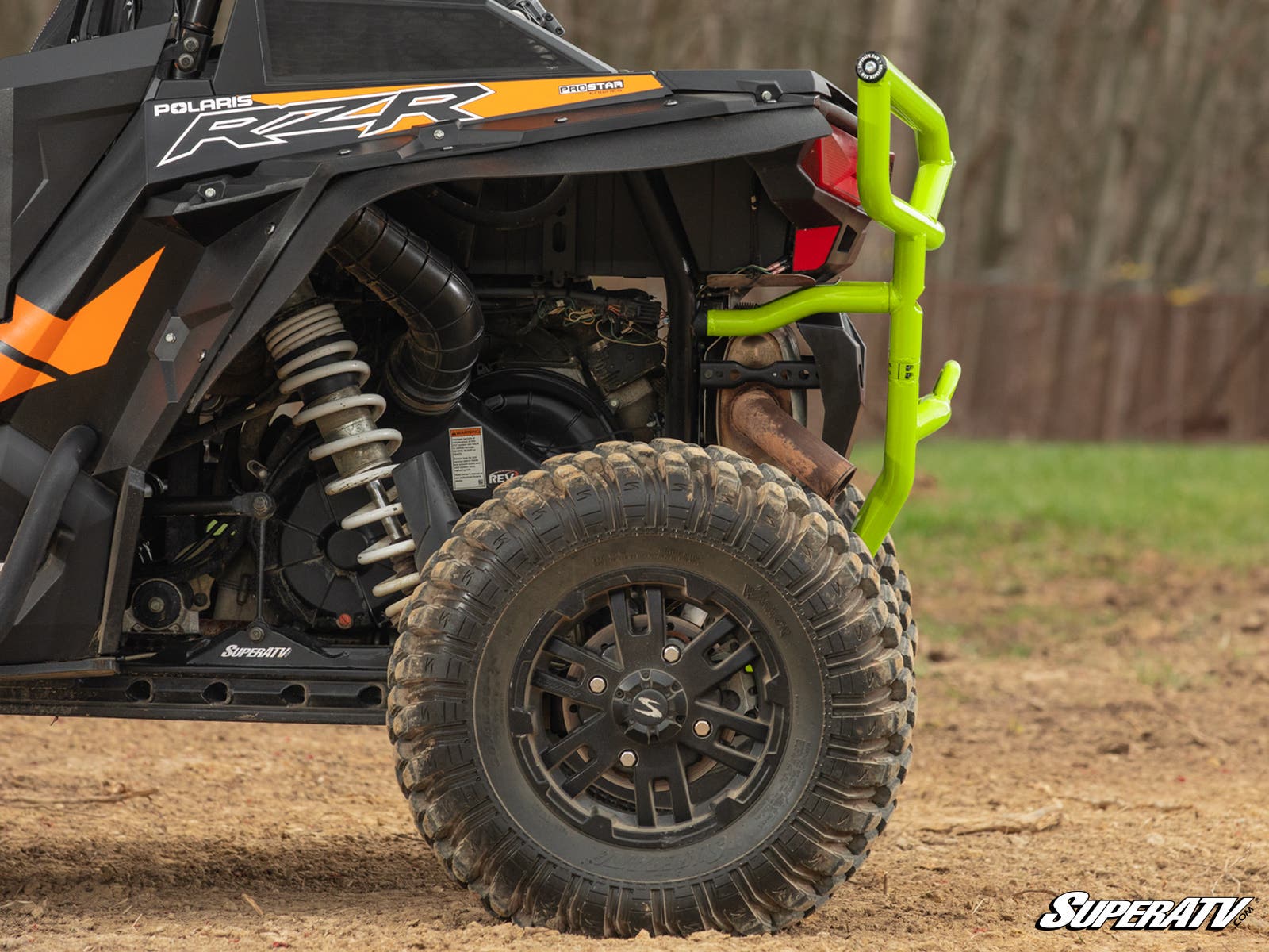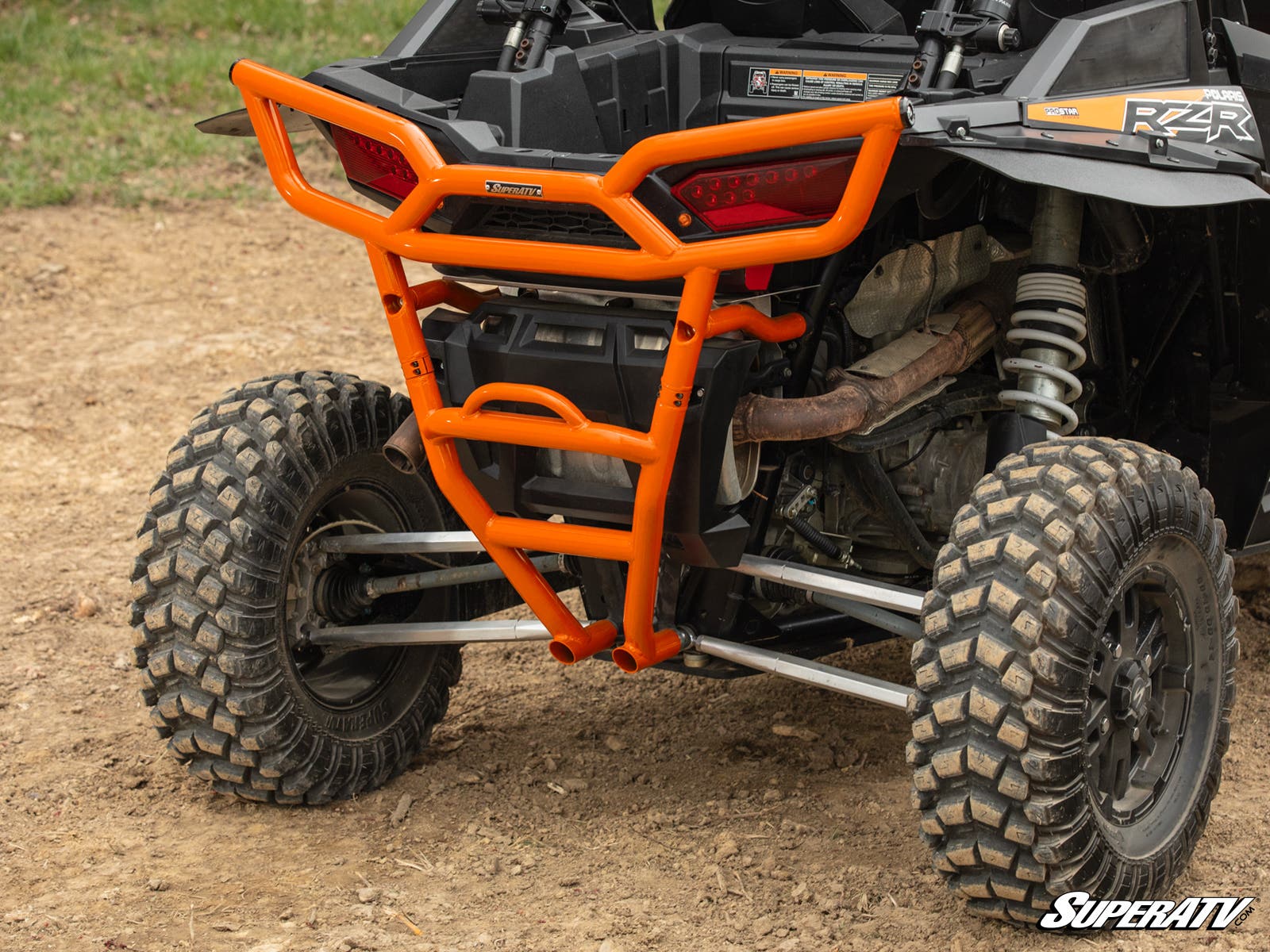 SuperATV's Rear Bumper for the Polaris RZR XP Turbo keeps your rear-end safe when you put the pedal down. One of the industry's fastest, most powerful, and most aggressive machines deserves a bumper to match the 168 horses under the hood. That's where SuperATV's Rear Bumper comes in.