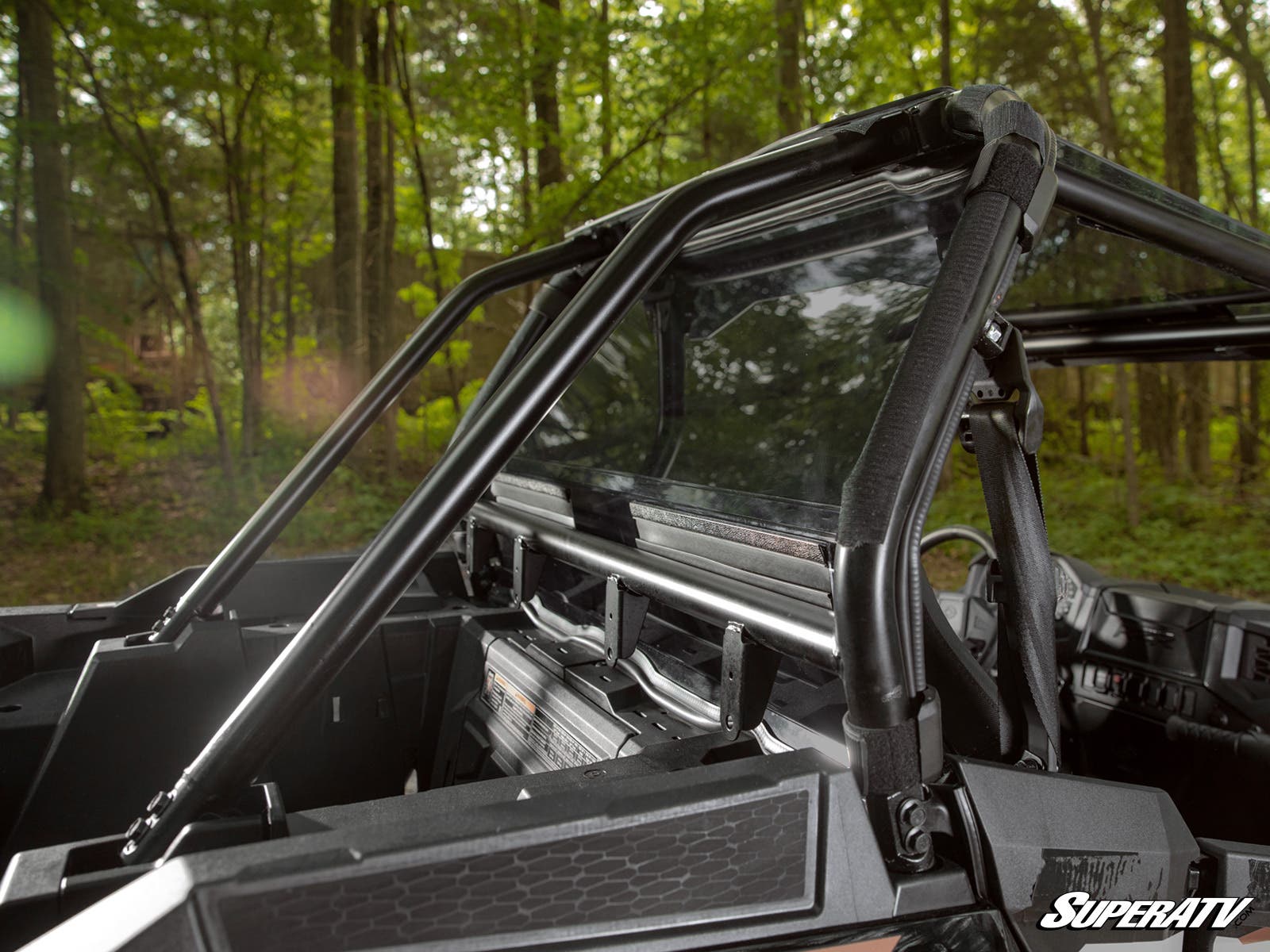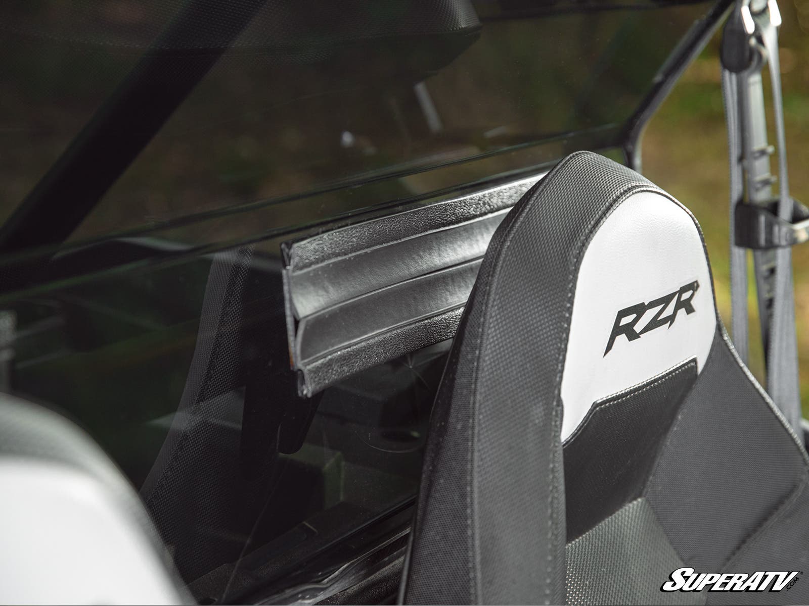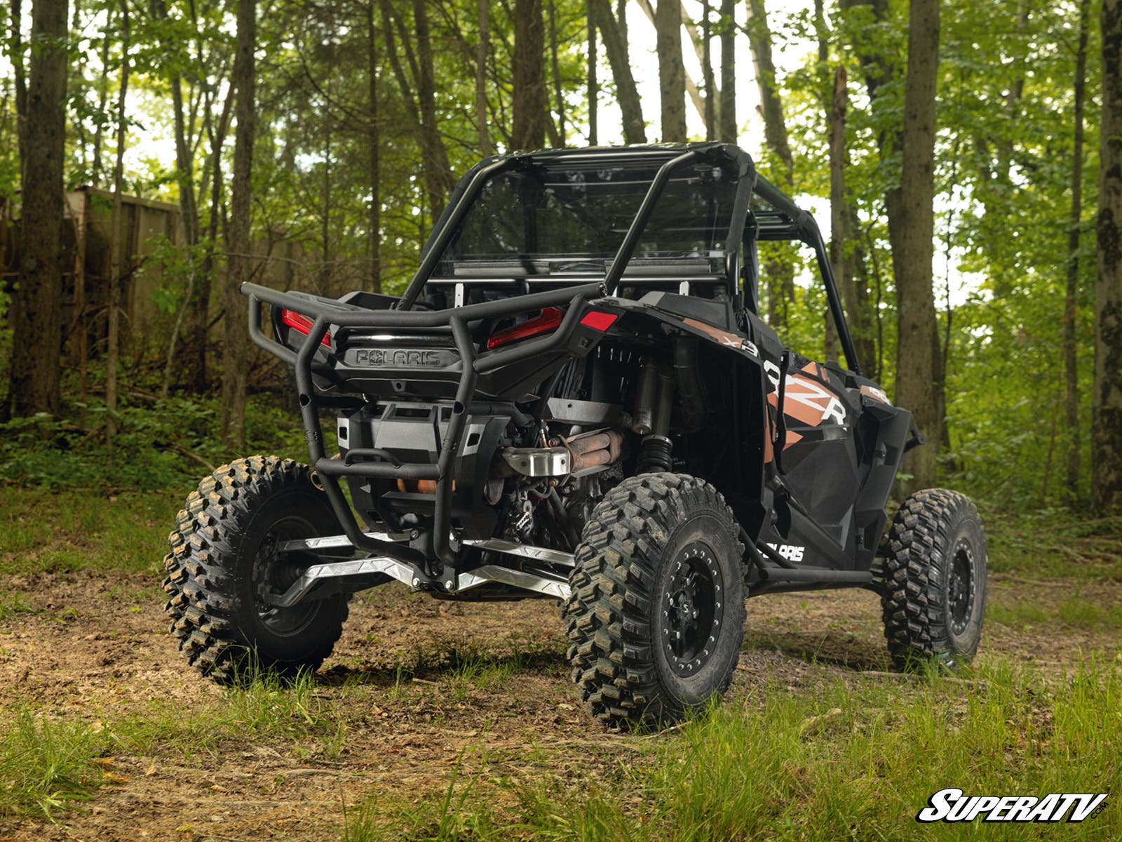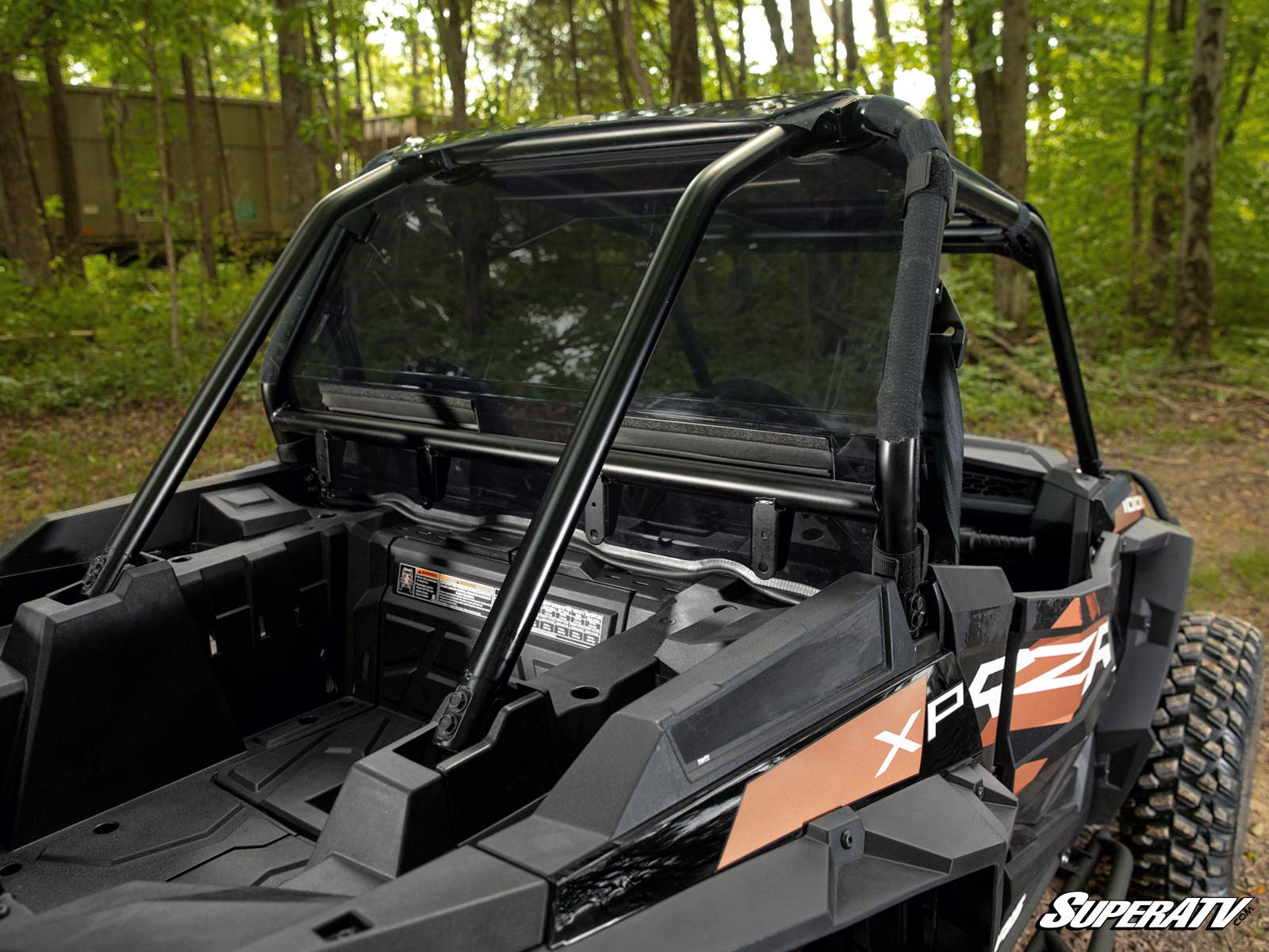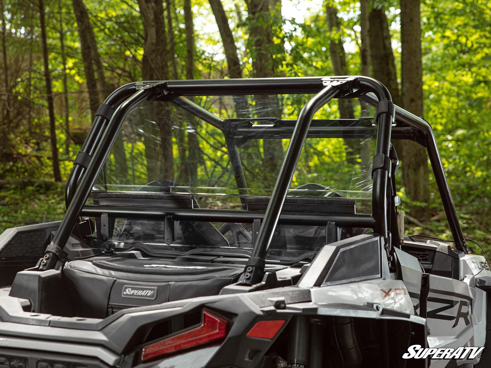 Why do you need a SuperATV Rear Windshield on your Polaris RZR XP Turbo It protects you and your passenger from your own rooster tail, it prevents dust from getting sucked into your cab when you use a front windshield alone, and it keeps you comfortable in any weather. With a clear or tinted rear windshield, every day is ride day.