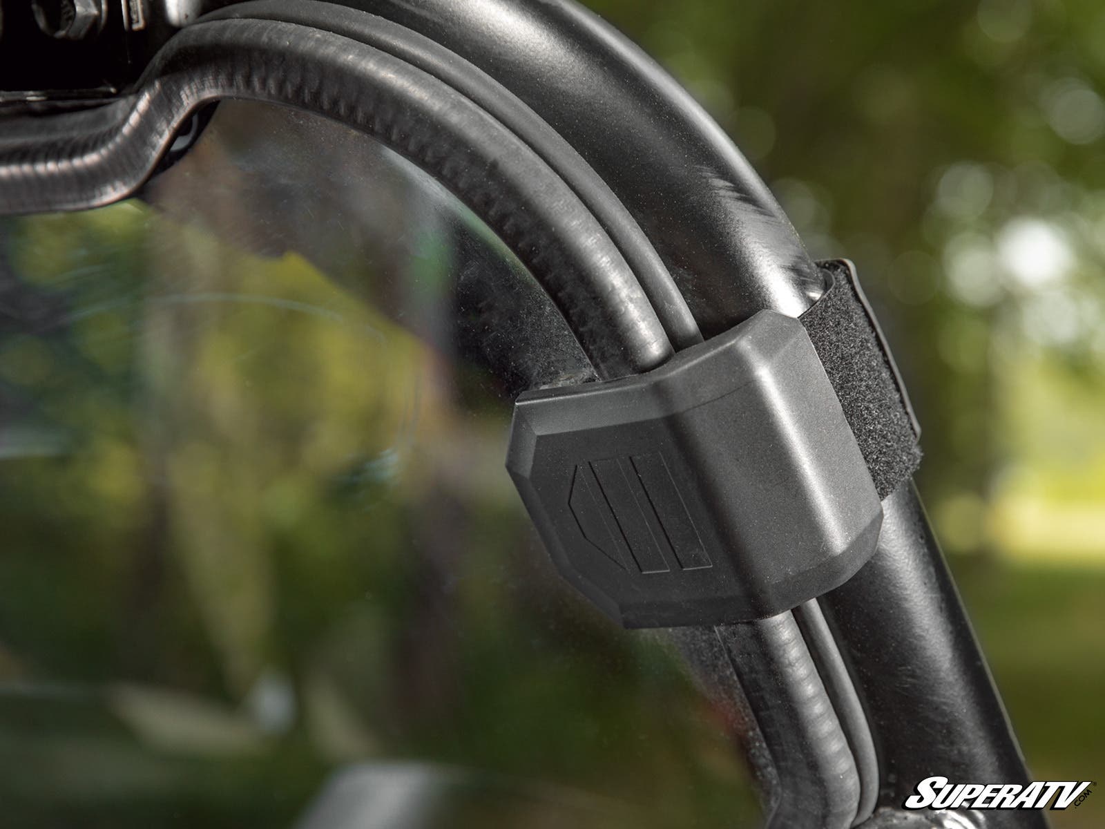 We use polycarbonate for our windshields because it's the perfect side-by-side material. It's 250 times stronger than glass so no matter how big the clods of dirt are that you kick off your rear tires, this windshield won't break.