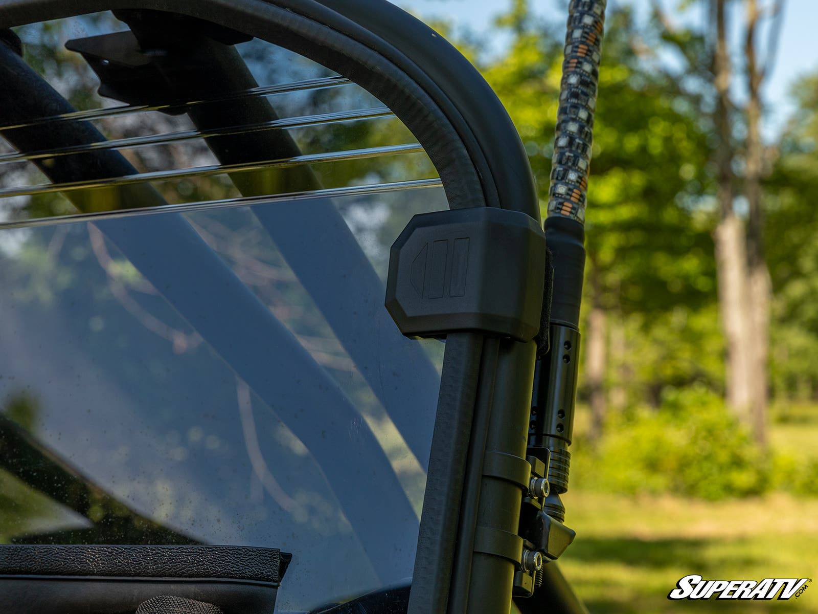 Polycarbonate is the perfect side-by-side windshield material because it's virtually unbreakable. It's 250 times stronger than glass and made for the trail so that any branch, rock, or rollover you encounter won't break this windshield.