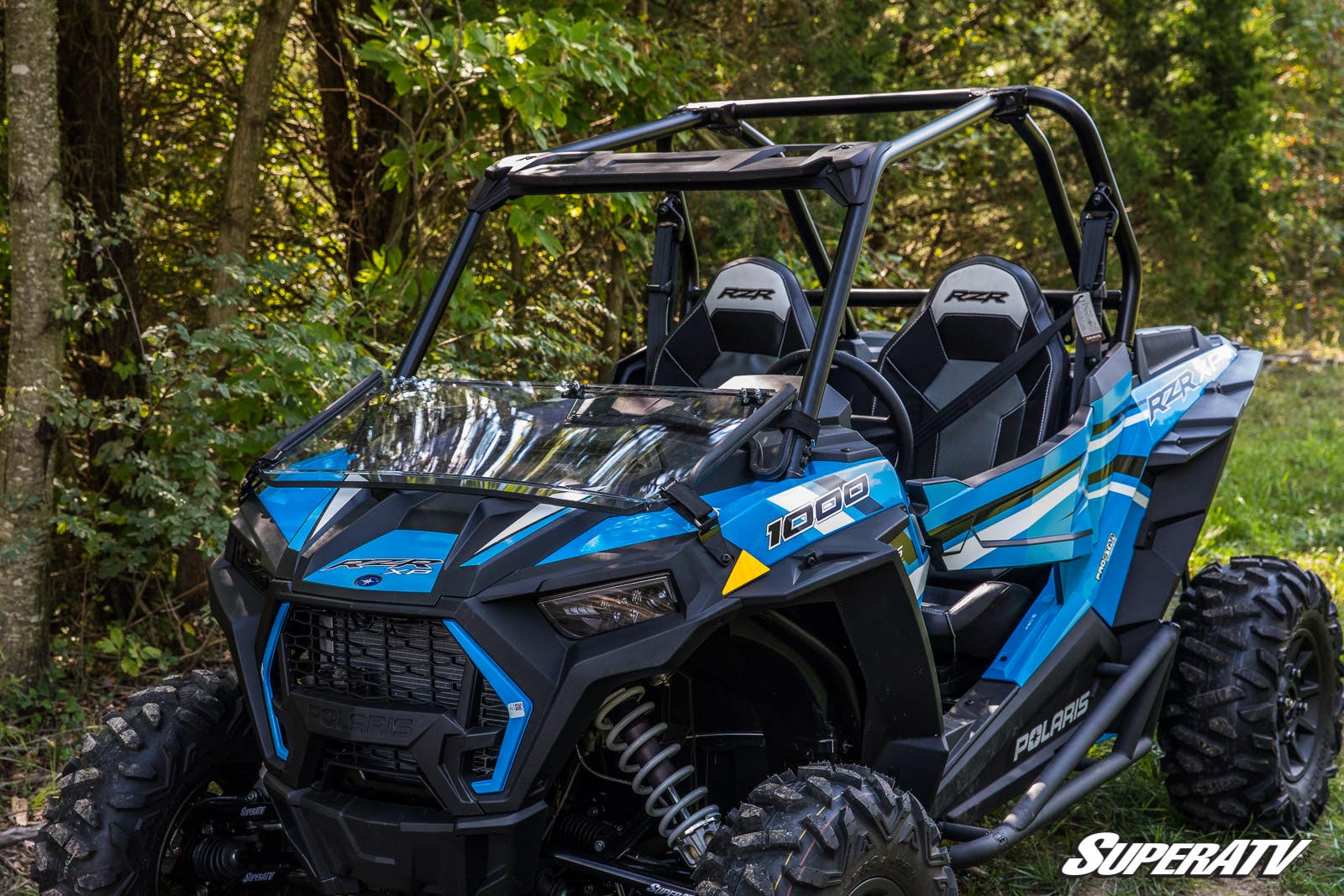 There's nothing worse than psyching yourself up for a long day on the trails only to open the door and realize the weather had other plans. Luckily, with the right windshield, there's no reason for a little rain or wind to curb your off-roading adventures. SuperATV's Scratch Resistant Flip Down Windshield adds protection, versatility, and style to your Polaris RZR XP Turbo. Keep it fully closed when you need to be shielded from the elements, or flip it down to enjoy that open-cab feeling. With a quality flip down windshield, you're always in control of your ride.
