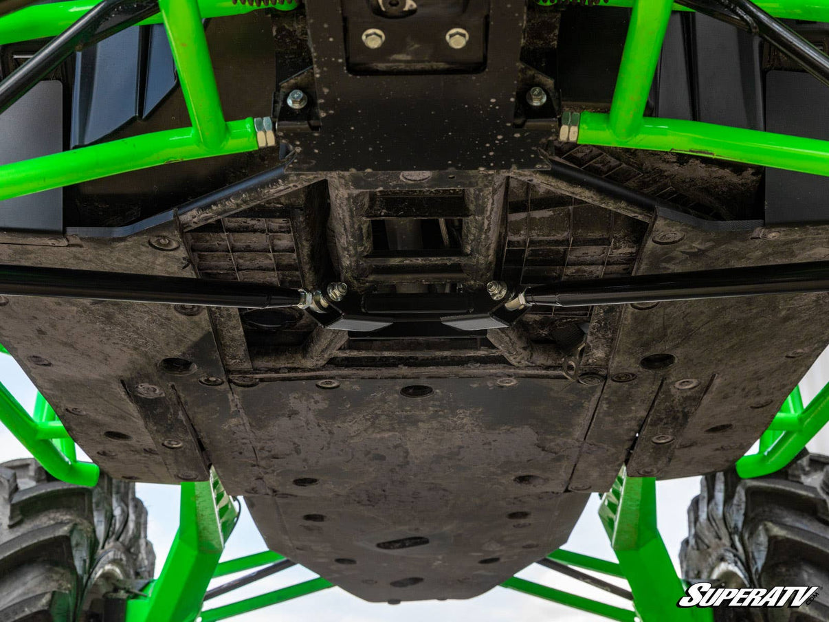 Perfect Engineering with Double Axis Technology Do you know why SuperATV is one of the only companies you can find that makes track bars, jamb bars, or A-arms support bars It's because they're really stinking tricky. Without precision placement, you'll compromise strength, ground clearance, suspension travel or, worse, all three. We use Double Axis technology to ensure you get full suspension travel without binding. They maintain perfect 3-point geometry that gives you maximum strength and clearance.