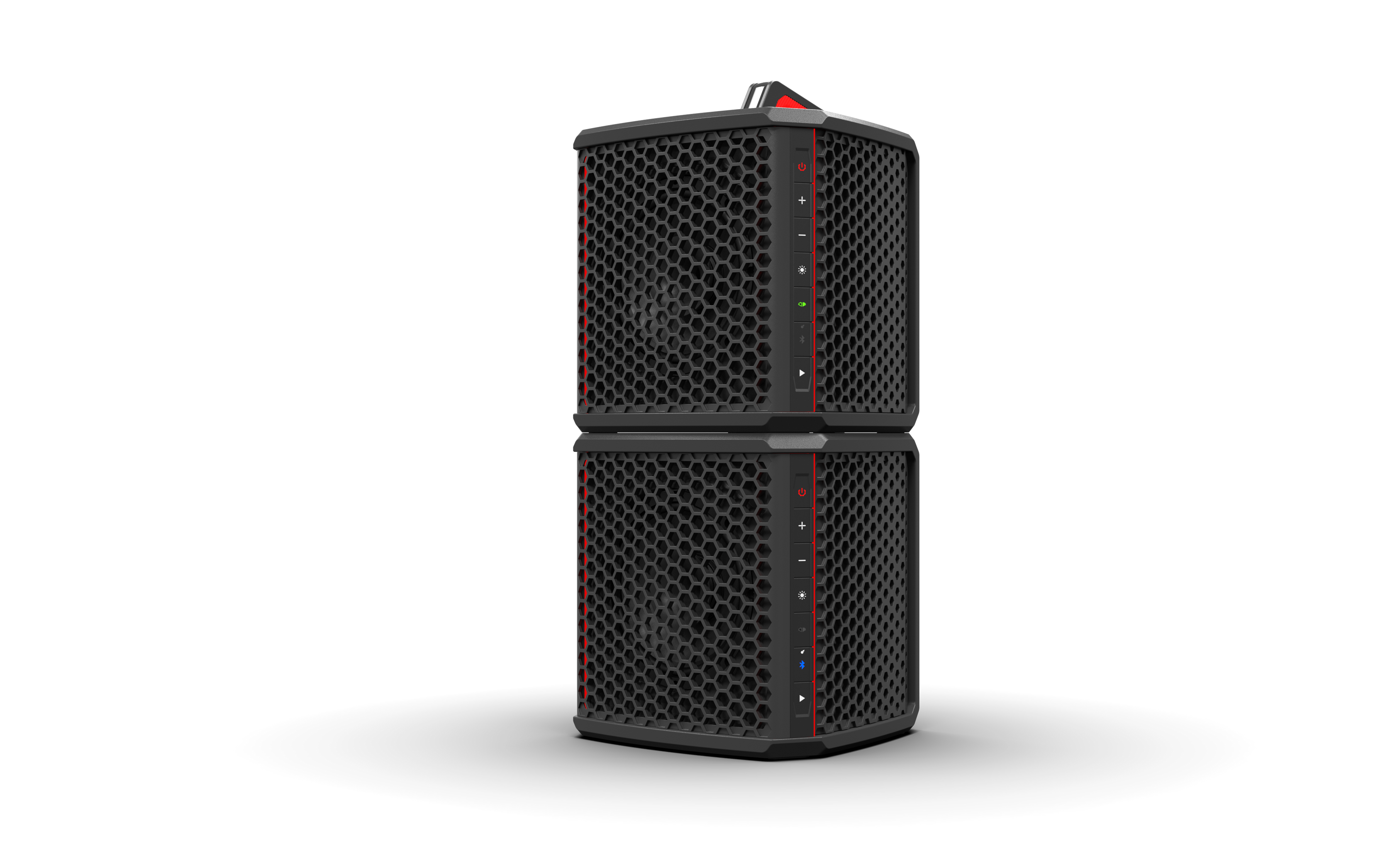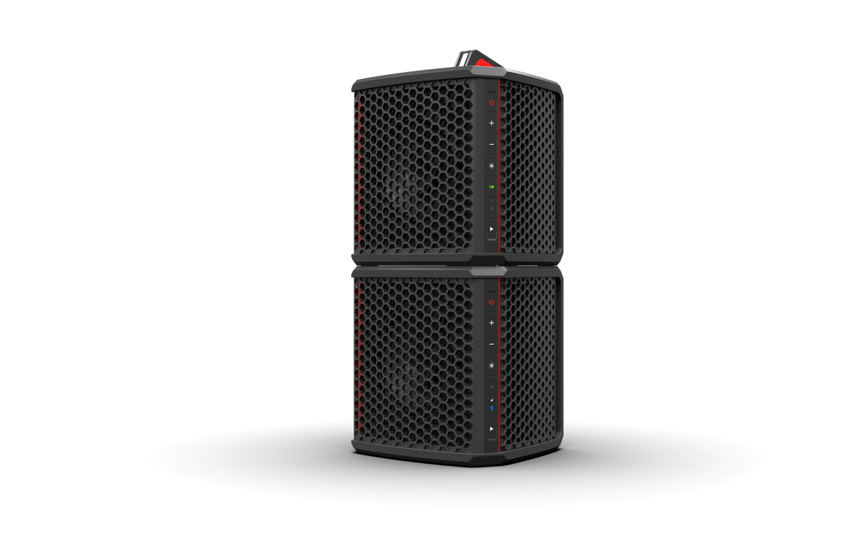 Portable and Stackable Design:Weighing 25 pounds, this speaker features an ergonomic handle for easy transport and interlocking stackable capabilities.