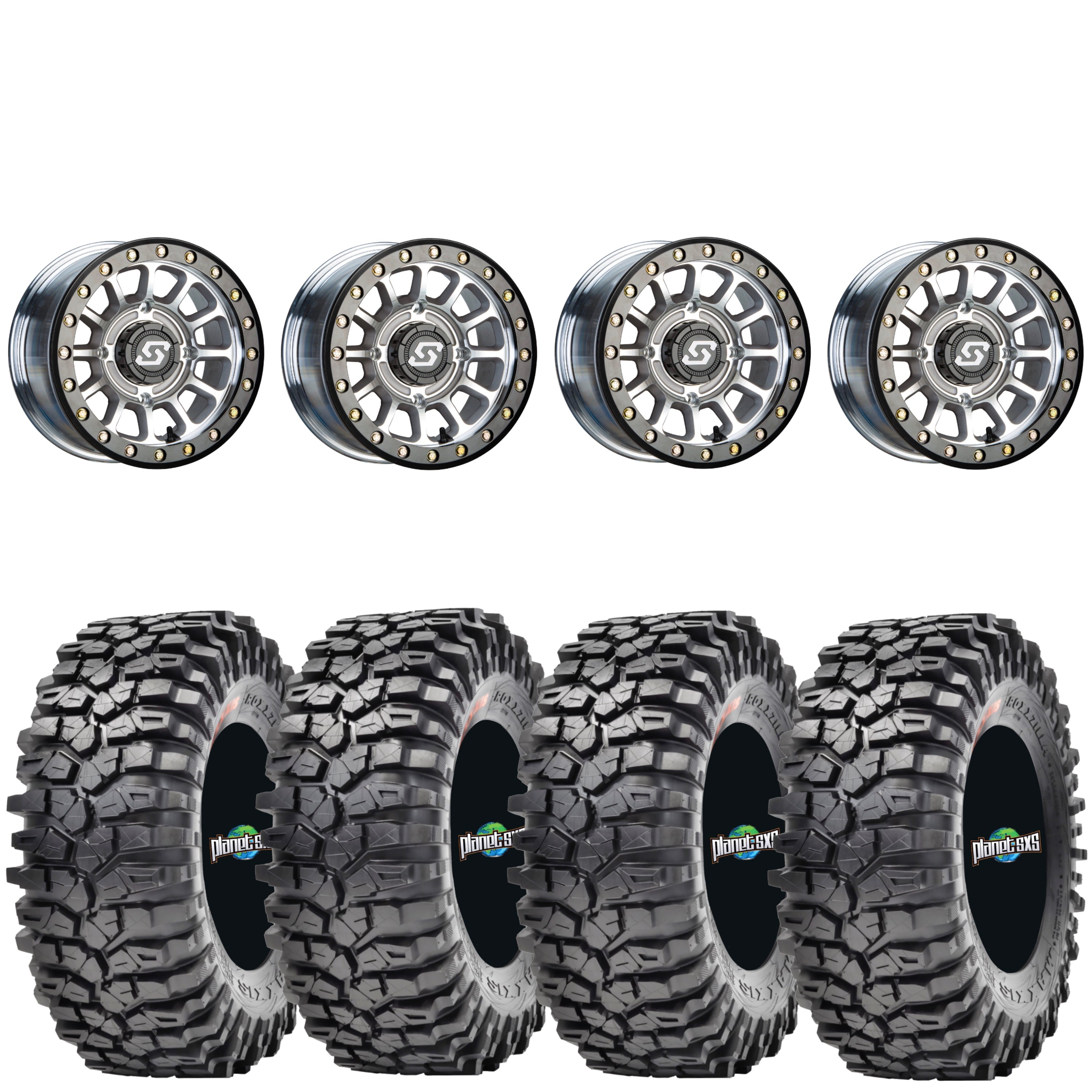 Get a set of (4) Sedona Sano 15X7 6+1 (+50mm) beadlocks mounted on 8-ply radial Maxxis Roxxzilla tires with vehicle specific lug nuts.