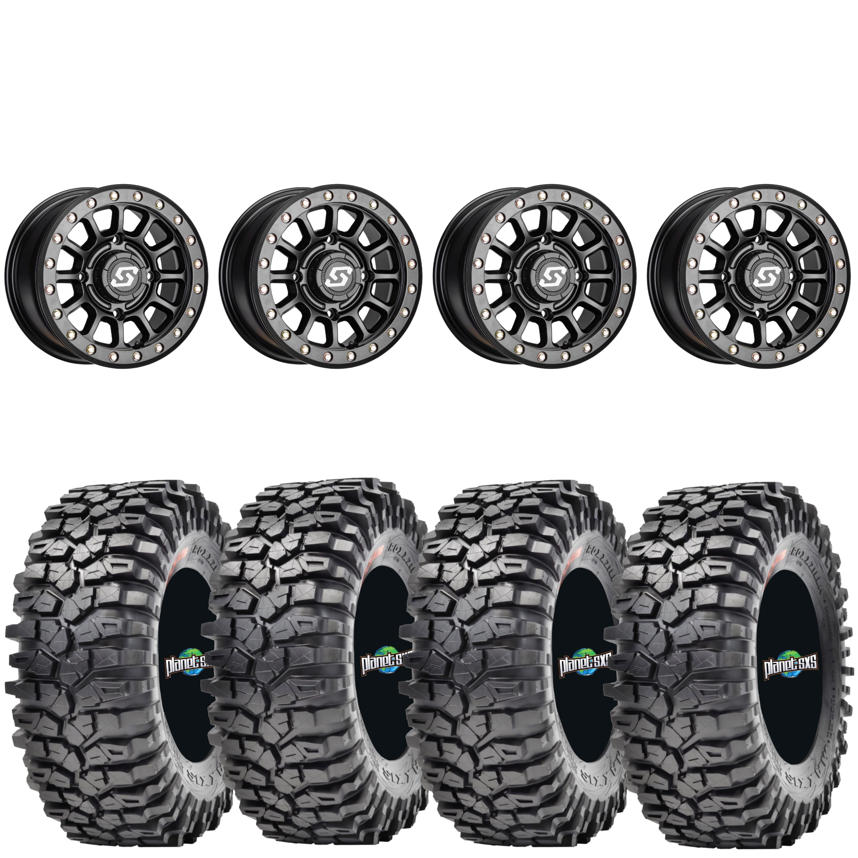 Get a set of (4) Sedona Sano 15X7 4+3 (+10mm) beadlocks mounted on 8-ply radial Maxxis Roxxzilla tires with vehicle specific lug nuts.