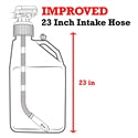 • Flow Rate of 2.4 GPM - Auto-Stop Overfill System • Water-Resistant Power Buttons | • Intake Tube: 23 inch - Discharge Hose 51 inch • 4pk of Adapters: Compatible with VP Racing, Midwest Can, No-Spill Can, and more Operates with Four (4) "AA" Batteries, Not Included!