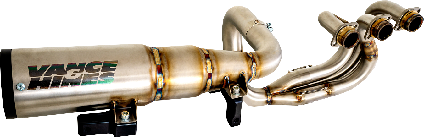 Competition Series Exhaust System 304 stainless steel construction, Hand TIG welded 4" steeped muffler, Double slip joints, Headers taper from 1-1/2" to 1-3/4", 3-into-1 true merge collector, CNC machined billet... Read More