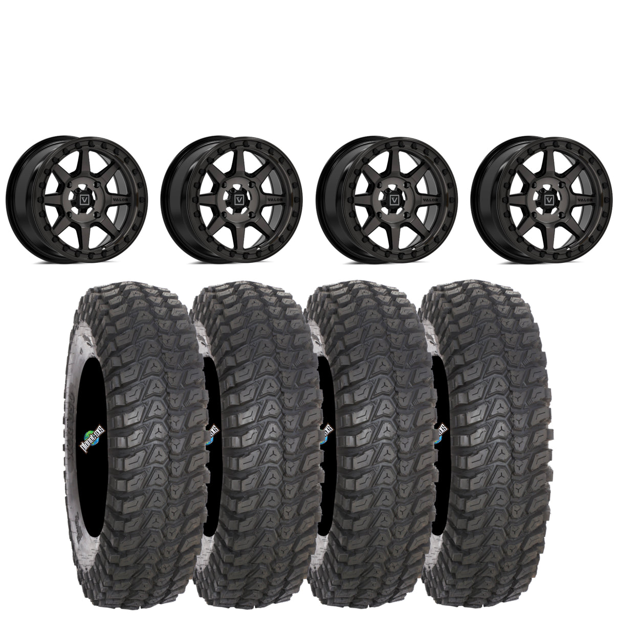 Get a set of (4) Valor Offroad V13 15x7 4+3 (+10mm) beadlocks mounted on 8-ply radial System 3 XCR350 tires with vehicle specific lug nuts.