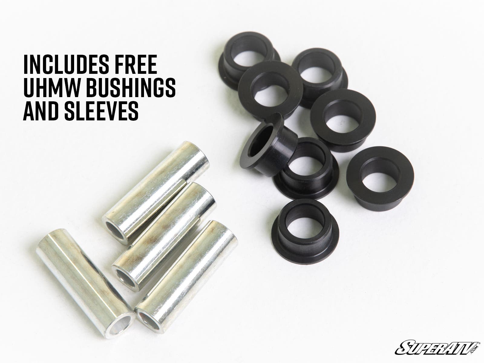 Industry-Leading Adjustable Pivot Blocks Our high clearance A-arms also come with industry-leading adjustable pivot blocks, letting you adjust your alignment and maintain perfect camber as needed. Having total control over your camber eliminates the premature tire wear that comes with adding a lift kit or bigger tires, which keeps you riding longer. Don't want to mess with those pivot blocks No need! We make sure they're pre-adjusted to stock specs right out of the box, so you don't have to make any adjustments unless you want to.